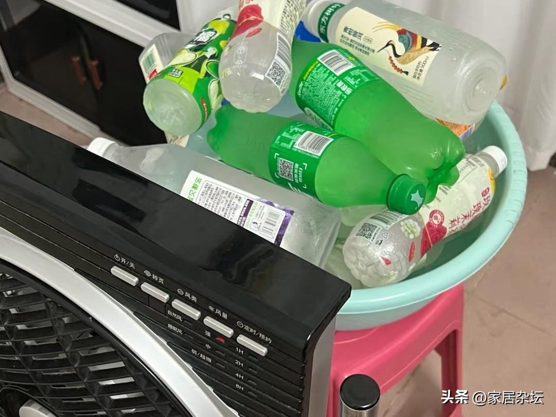 看看網友的操作:取幾個大號塑料瓶,比如大礦泉水瓶子。灌滿大約3/4的水,然後放在冰箱裏冷凍成實心冰塊。