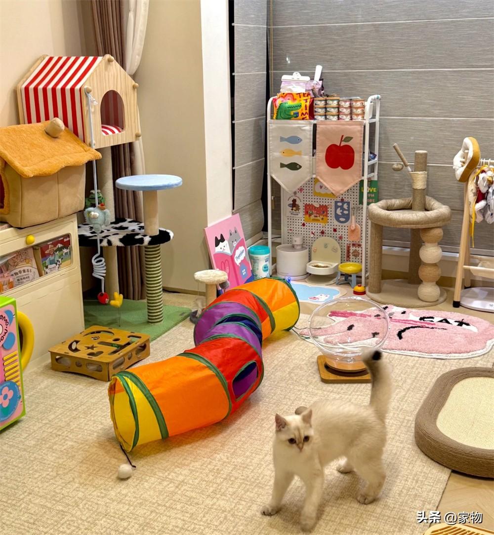 鏟屎官也會在貓咪玩膩了貓玩具、磨膩了貓爪板的時候,隨時給貓房內進行更換,讓小貓一直保持新鮮感。