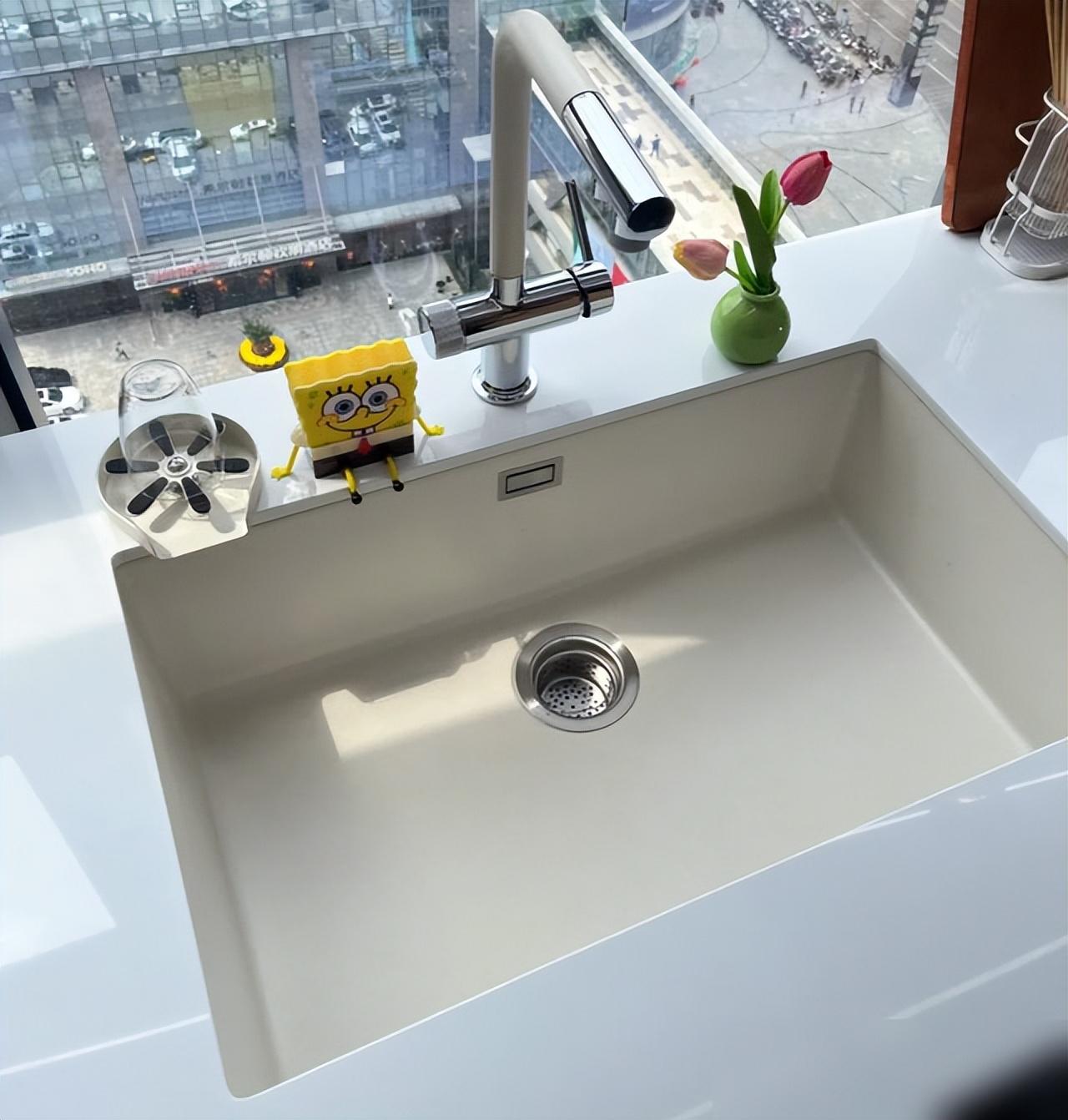 當初覺得比不鏽鋼好看,貴點也值,結果用了沒倆月,刷鍋時不小心磕了個印子,越看越膈應;還有一次倒醬油沒擦乾淨,滲進去變成黃印子,拿牙膏、小蘇打搓都沒用,現在這水槽跟“花臉貓”似的,後悔得我直拍大腿——還是304不鏽鋼好,隨便造都不怕,而且便宜一半,真是交了智商稅。