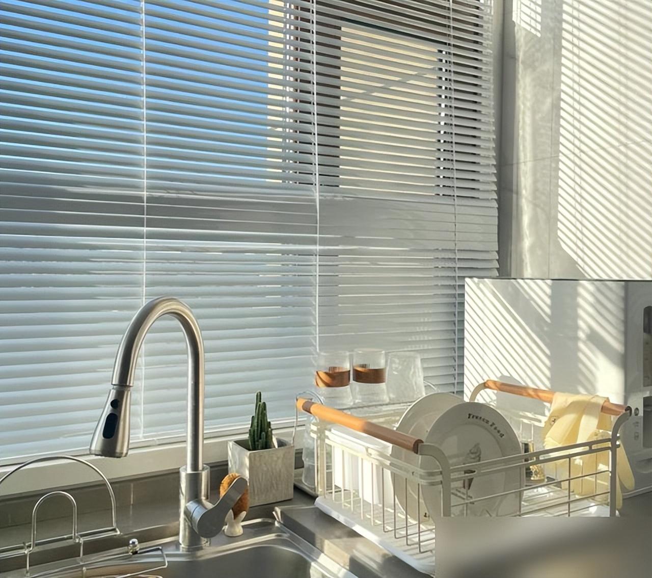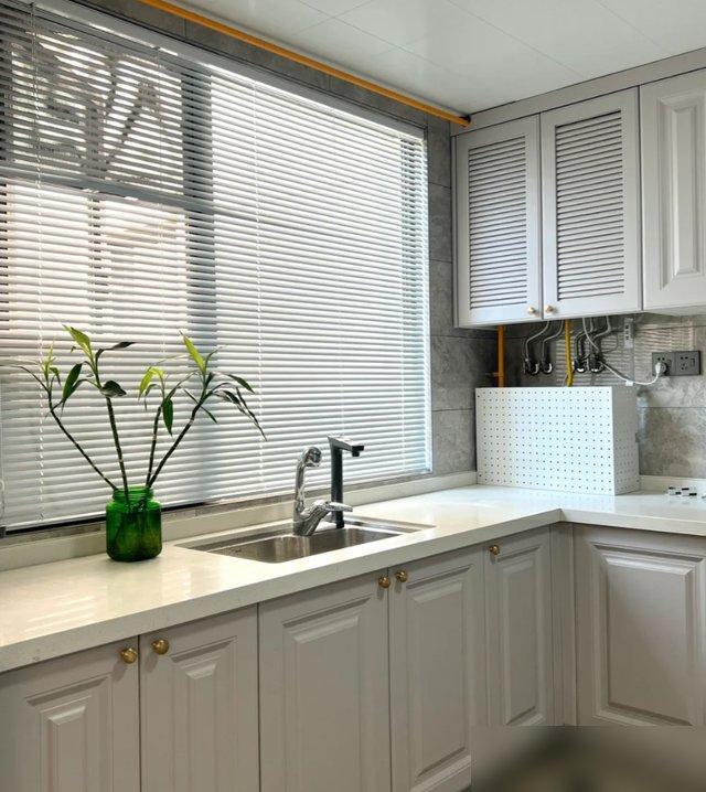樓下阿姨家裝了,她說每次擦都得拆下來,百葉縫裏全是油,拆一次要半小時,而且風一吹就“噼裏啪啦”響,晚上根本睡不好,後來換成半簾,想拆就拆,擦的時候扔洗衣機裏就行,方便多了——廚房哪需要什麼“氛圍感”,好清理纔是王道。