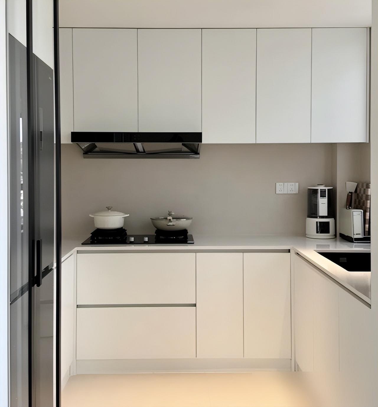 膚感膜櫃門我家衣櫃用了,廚房本來想跟風,後來聽裝修師傅說“廚房油煙大,膚感膜沾手印跟粘了膠水似的”,趕緊換成PET高光的——現在炒完菜拿溼毛巾擦兩下,一點印子都沒有,亮堂堂的還顯大,比那些“高級感”管用多了。
