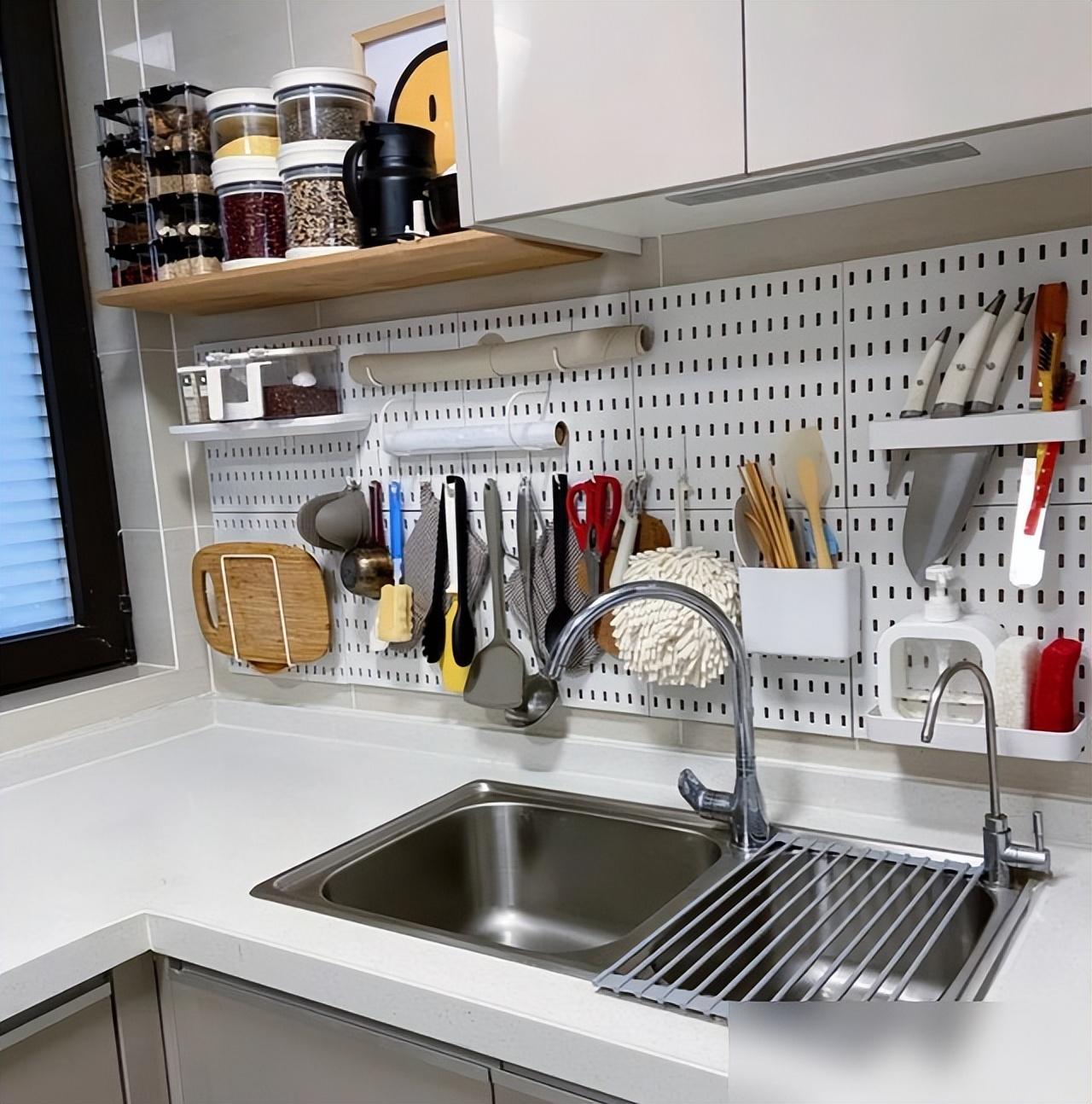 就說那洞洞板吧,當初覺得能遮管道還能掛鍋鏟,顏值高又靈活,結果用了倆月,洞洞裏全是油污,拿牙刷刷都刷不乾淨,夏天還爬小蟲子,我現在看見它就煩,後來換成琺琅板,擦的時候拿廚房紙抹兩下就亮,早知道一開始就不瞎跟風。