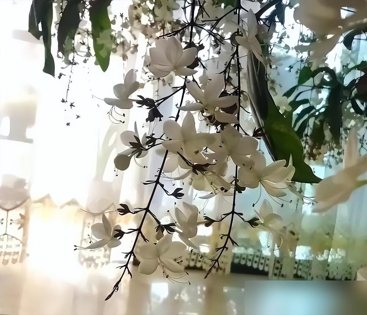 以前總覺得“人間仙境”是電視劇裏的場景,現在看自己家客廳,兩盆垂絲茉莉垂着花串兒,陽光透過窗簾漏進來,落在花上連灰塵都像在跳舞——原來仙境不是遠在天邊的風景,是你親手養的一盆花,是它慢慢開成你喜歡的樣子,是每天推開門先看一眼那串白花的安心。