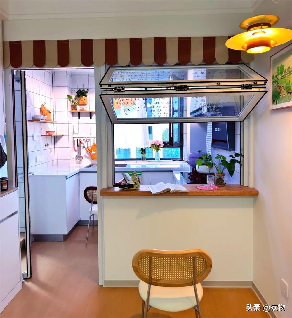 這戶人家(@小臉的幸福生活)的廚房疊窗,既解決了原本廚房陳舊、採光差的問題,又讓家裏多了一個傳菜、採光、通風的通道,真的是又好看又實用又有趣。