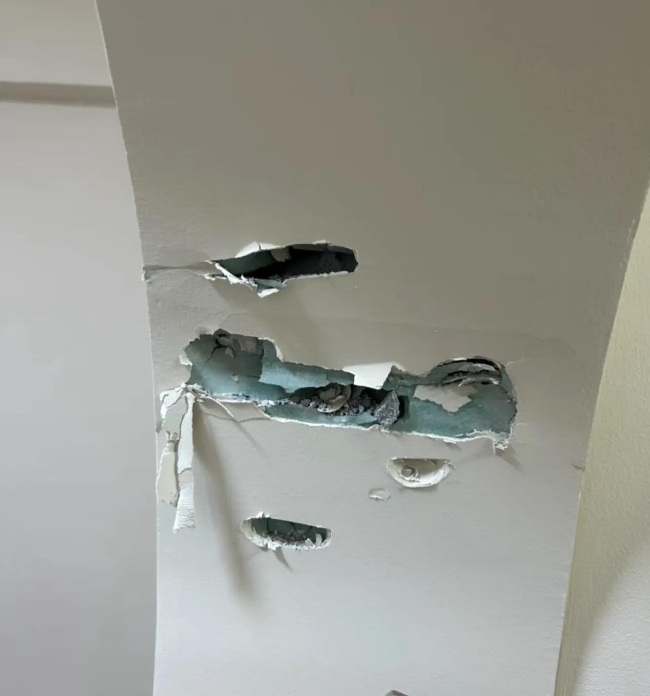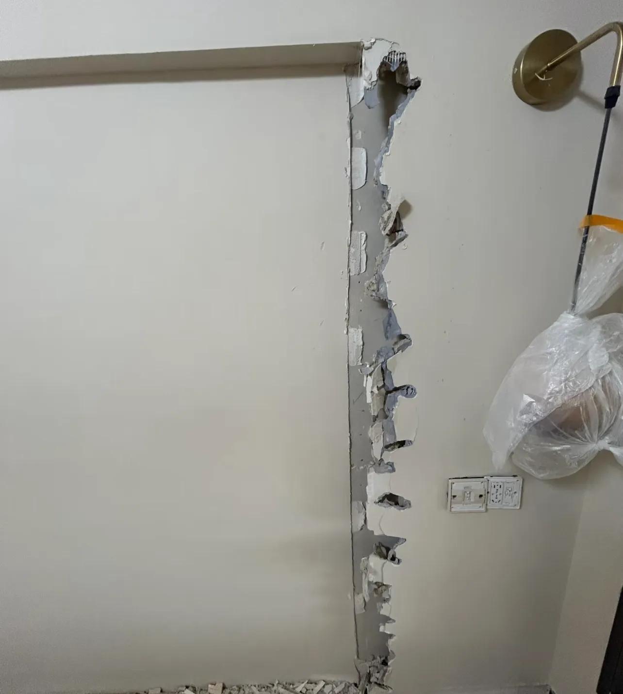 我還沒開口說重話,施工師傅倒先炸了——直接抄起榔頭"哐當"幾下,把我家牆面砸出幾個大窟窿!真的是很囂張。