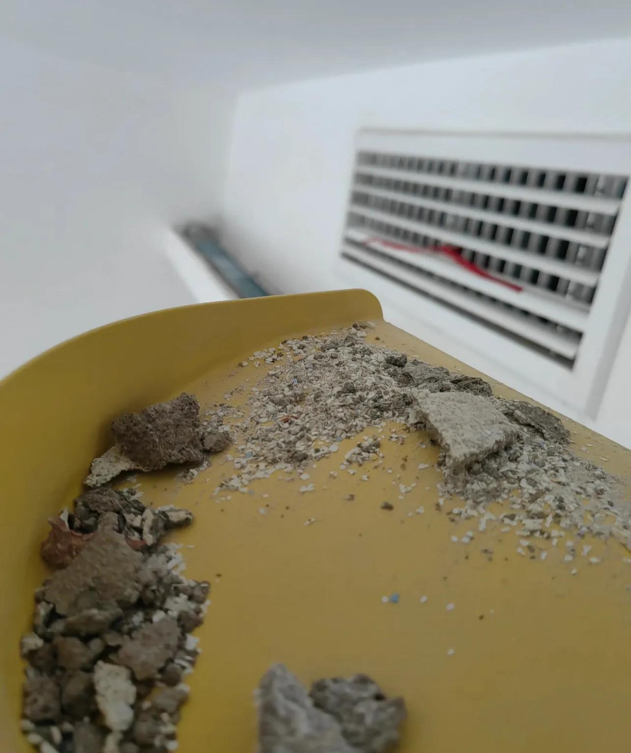 就對着空調口,建築垃圾就這樣通過空調循環系統,悄無聲息地瀰漫在整個居住空間。