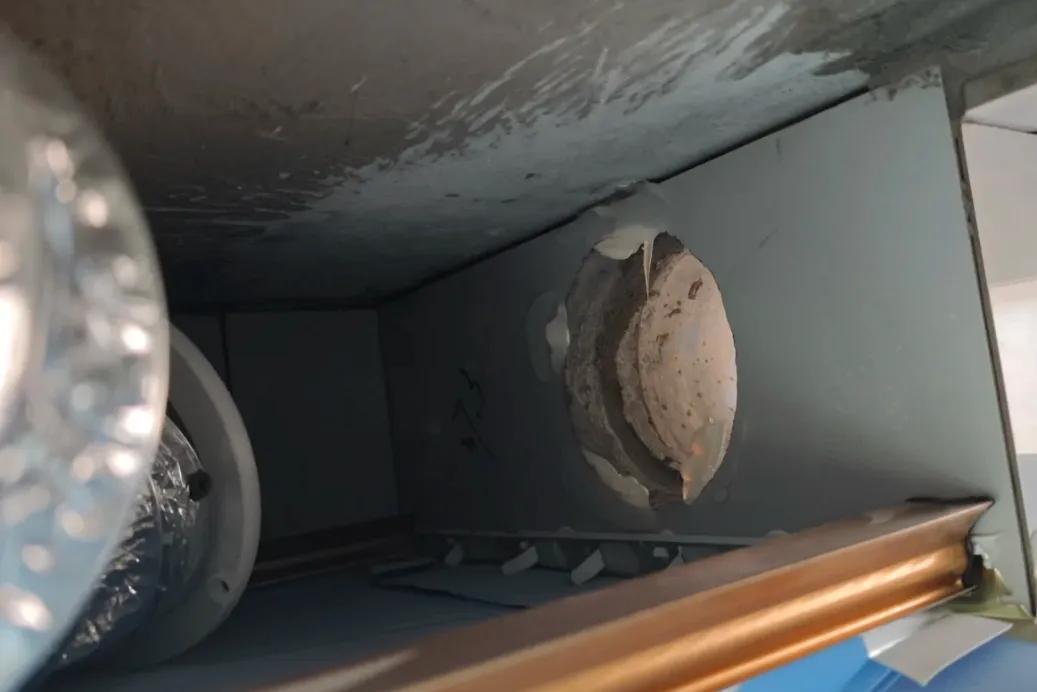 起因是衛生間吊頂處漏水,把鋁扣板拆開一看,浴霸排風管就隨意扔在吊頂上,怪不得呢。