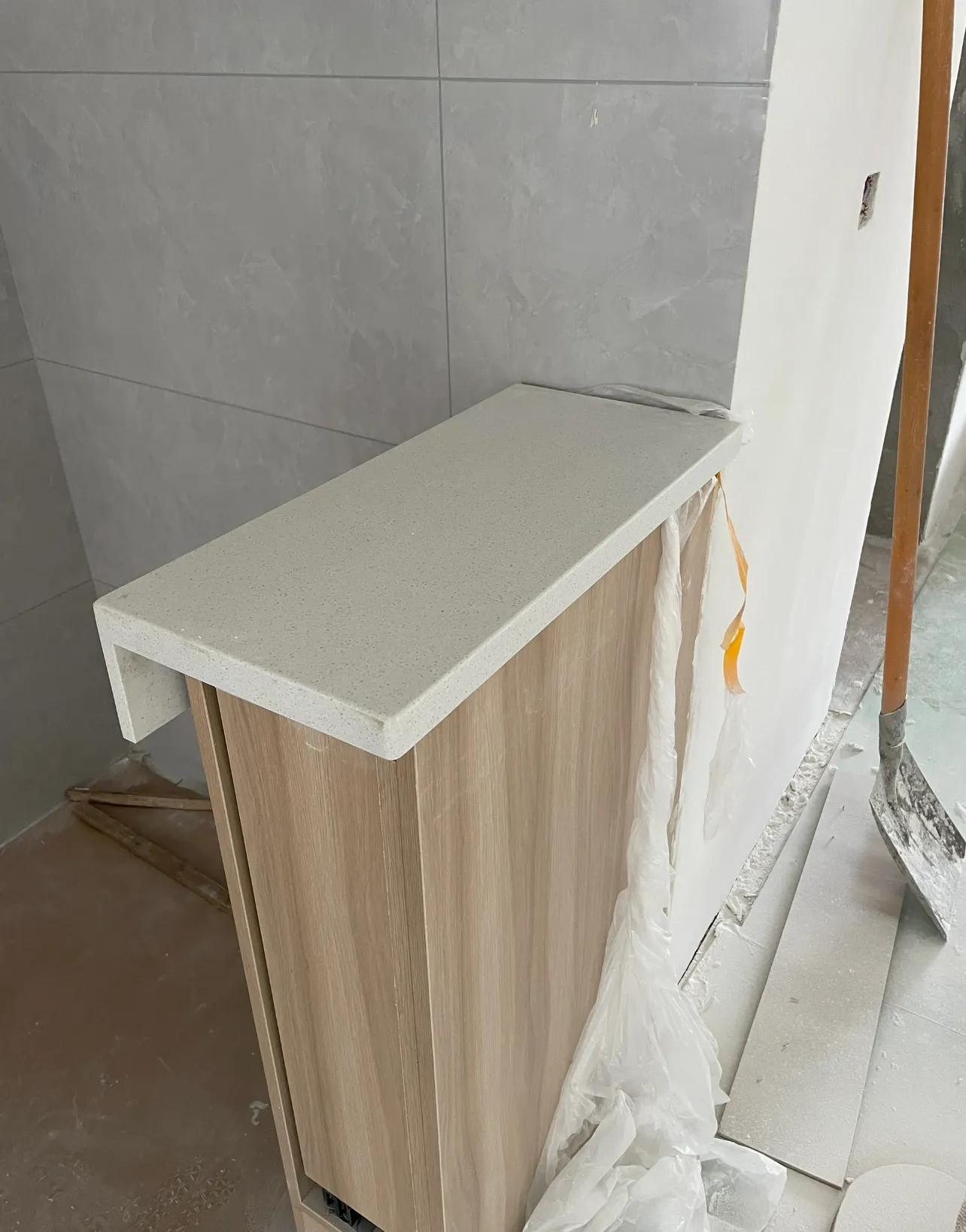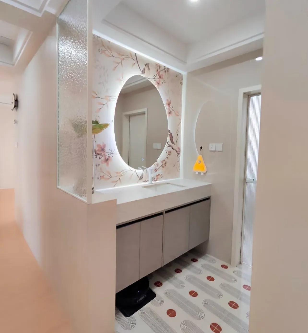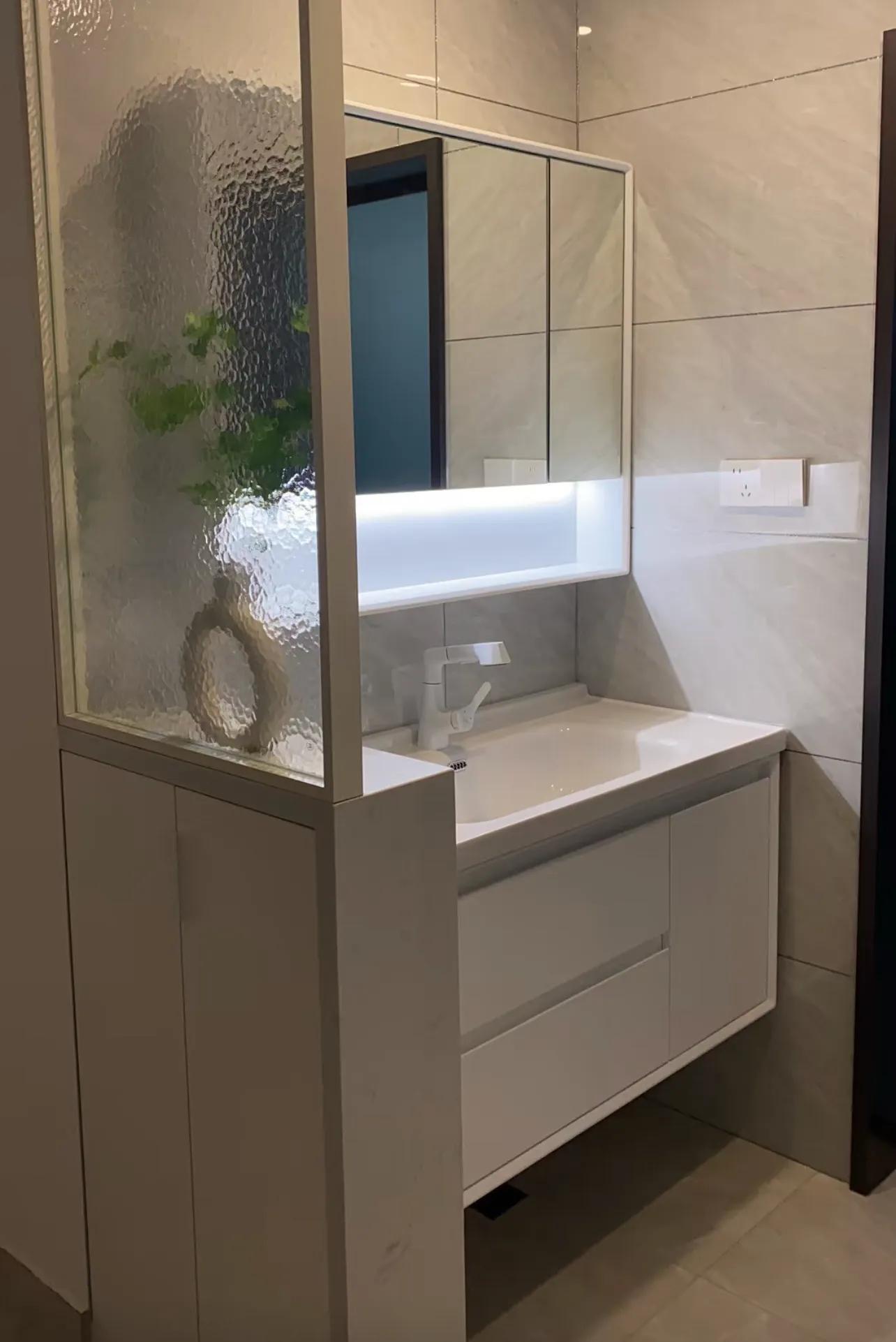 抄作業沒抄全面,原本想做個慵懶風衛生間半牆,結果半牆收口處有石材凸出來,裏面也有包邊,真的巨巨巨醜!