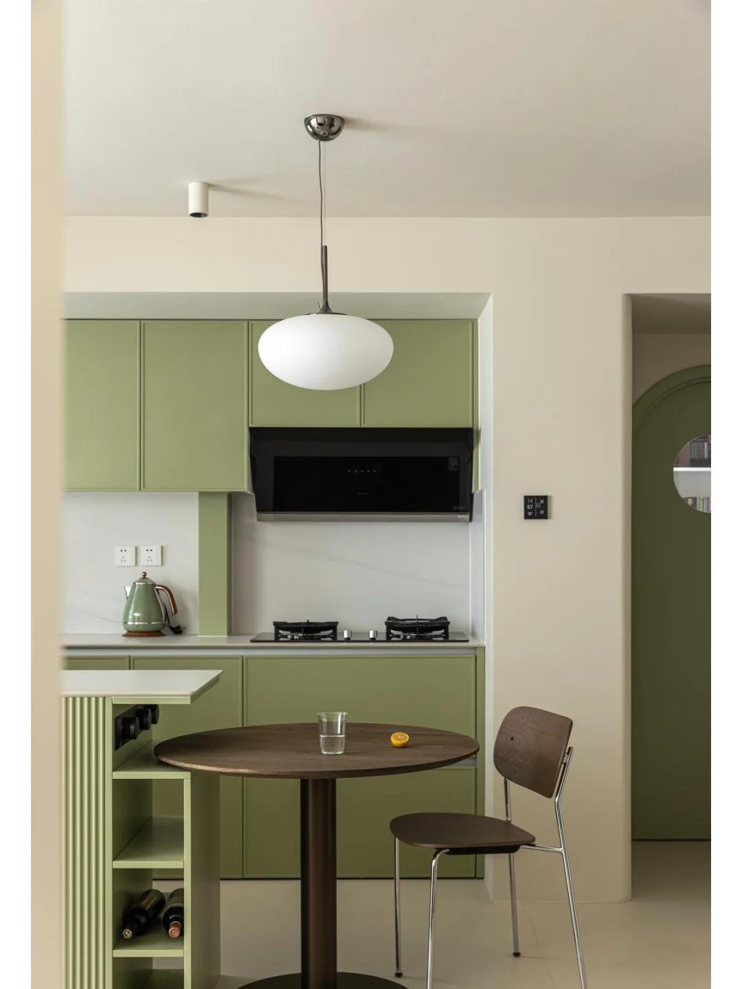 儘量和設計師對着色卡做成牛油果綠,這種低飽和的綠,更清新、自然,讓人感到平靜和放鬆。