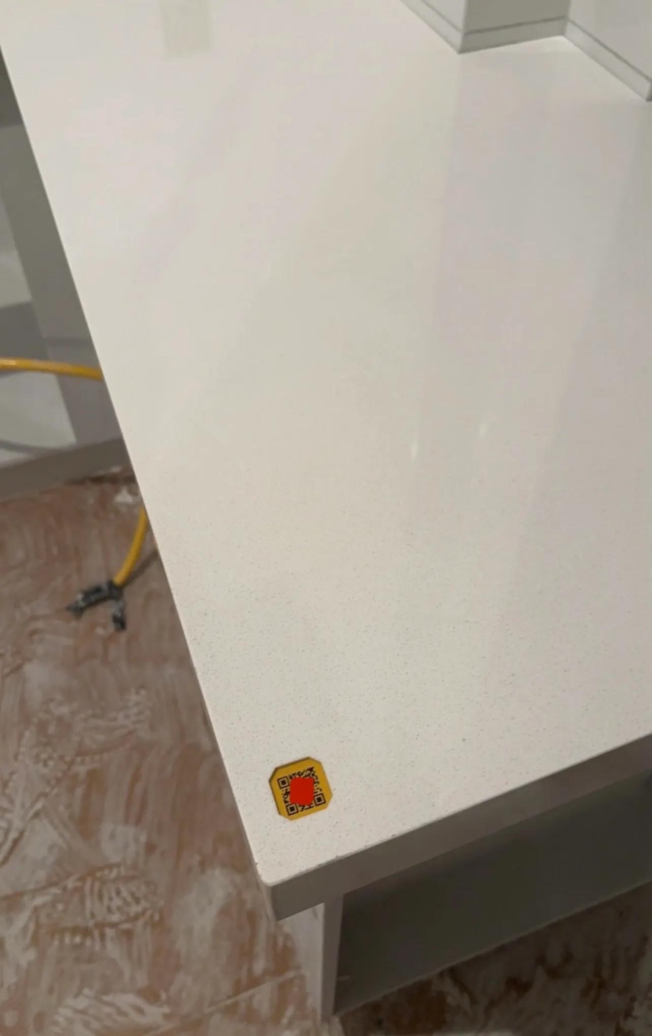 家裏裝好的櫃子,我一抬頭看到有凹陷進去的二維碼,查了一下才知道這是把展示用的樣品石材給我用上了!