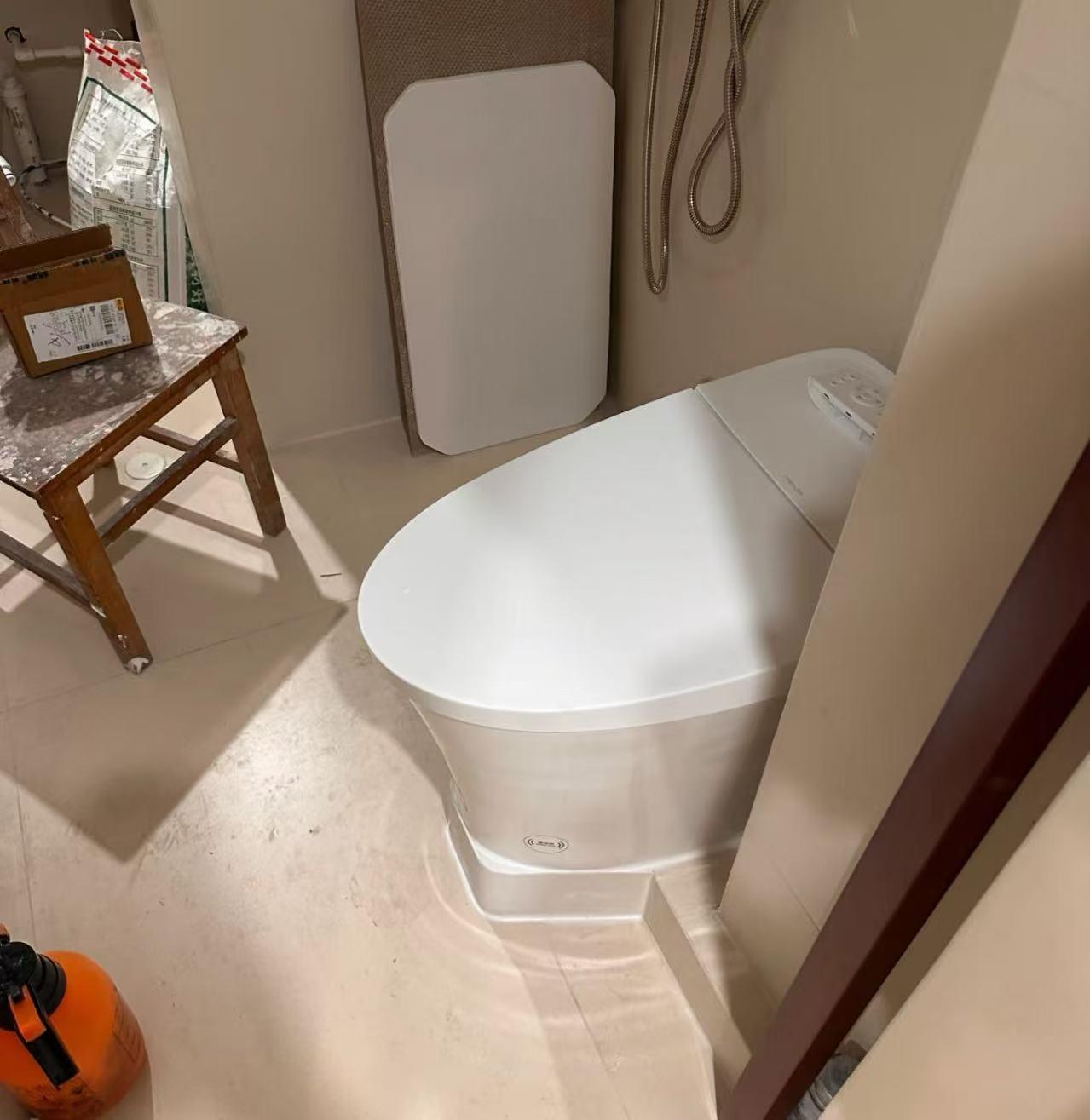 小區污水管太高,和裝修公司溝通過很多方案,沒辦法,不得已抬高馬桶。