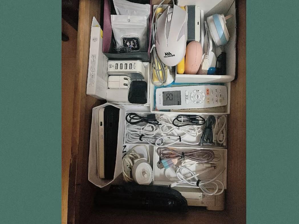 曾經,我也爲這些老舊的電子產品糾結過,捨不得扔。但是,抽屜裏糾纏不清的數據線,還有就是那些早已淘汰的舊手機,舊充電器,壞掉的耳機,不知道有什麼用的遙控器。甚至,還有很多包裝電子產品的包裝盒都留着,越來越亂。