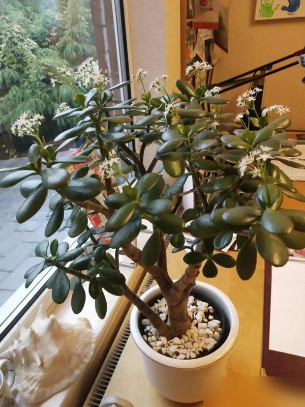 你要是也養着玉樹,別急,就把它放在能曬着太陽的地方,土幹了再澆水,春秋給點薄肥,然後——等。