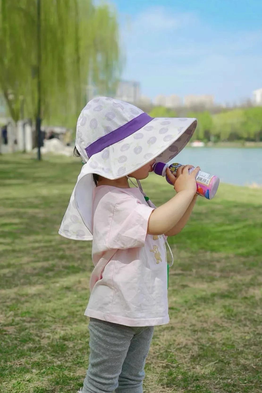 小小一個直接塞進包裏,這個防曬帽遮陽範圍超級大,加寬帽檐 +超大護頸披肩,孩子的臉蛋、脖子、肩膀、後頸,通通被遮擋住,這防護力,太陽看了都得懵圈。