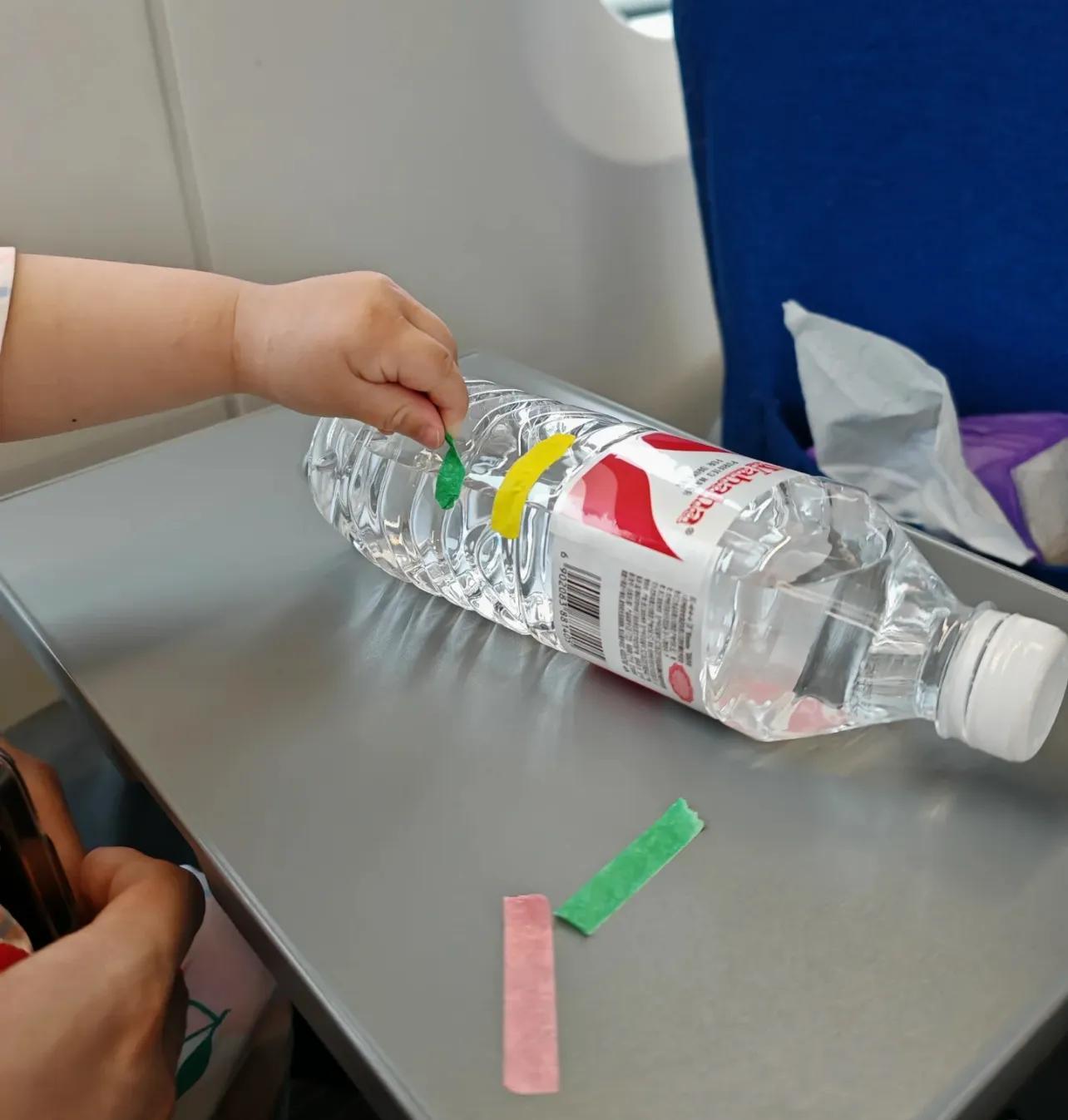 暑假出遊玩,帶上美紋紙,孩子在礦泉水瓶上撕下來貼,貼上去再撕,貼各種地方不會留下痕跡,關鍵是輕便好帶,孩子一聲不響玩了二十多分鐘。