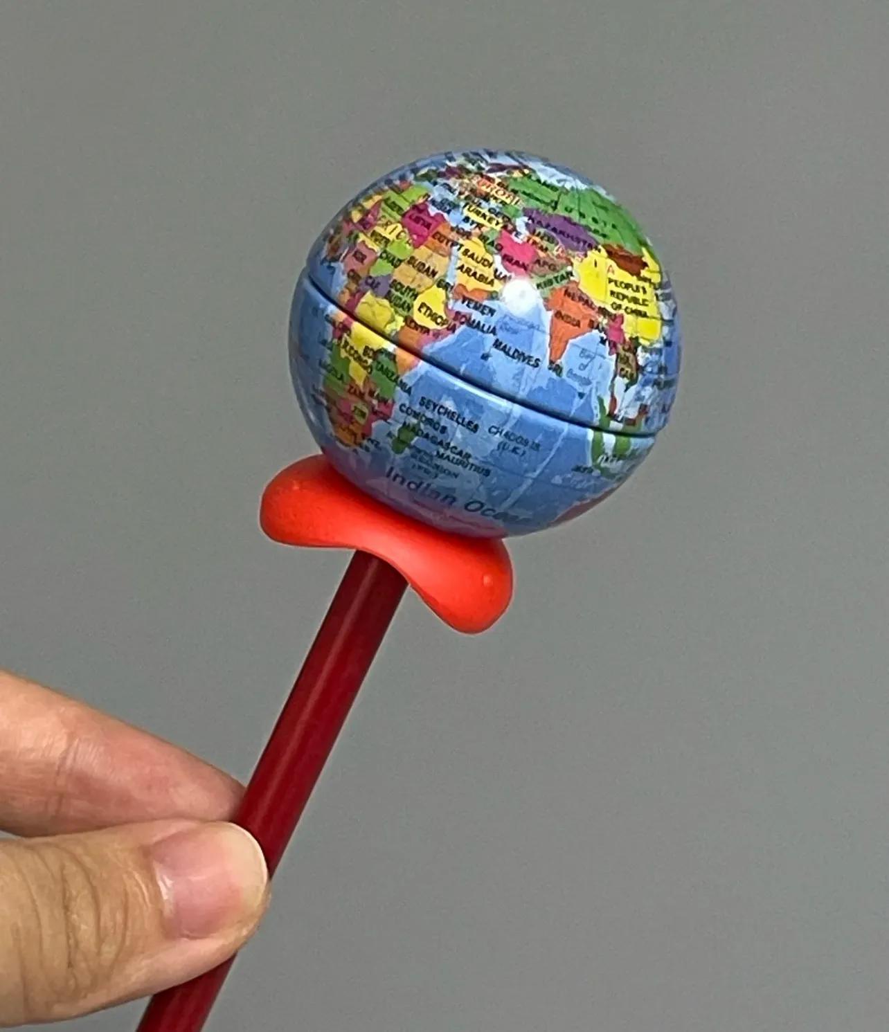 我家小寶,接着用他哥的幼兒園轉筆刀,是一個地球儀轉筆刀,特別Q萌,地球儀上字圖蠻清晰的,平時孩子能認識上面的國家,也能當個小擺件。