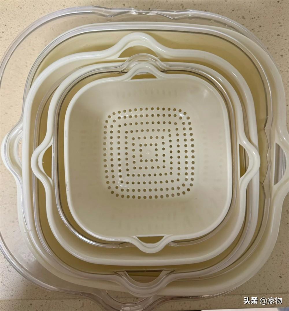 這組洗菜瀝水盆,也是我一直在用的好物,它有三個內盆、三個外盆,不用的時候都可以堆疊在一起收納,特別省地兒。