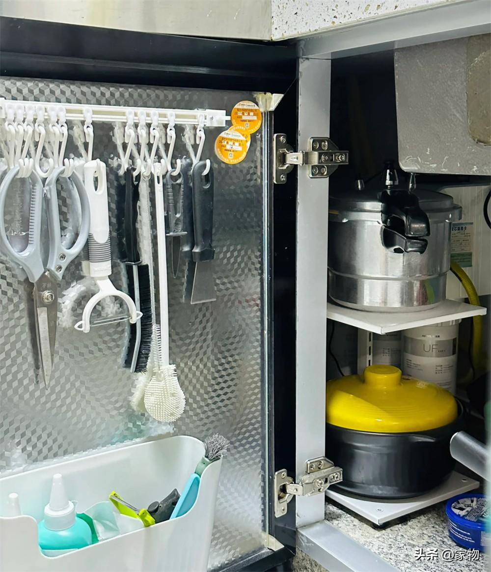 畢竟關上櫃門的時候,門後的空間其實是有些浪費的,貼上一組這樣的掛鉤,也可以掛些剪刀之類的小件廚房用品,進一步減輕廚房內的收納壓力。