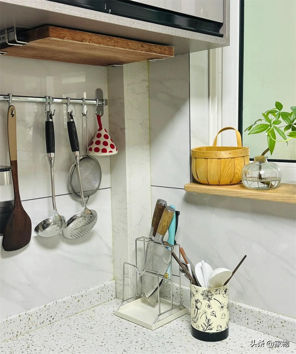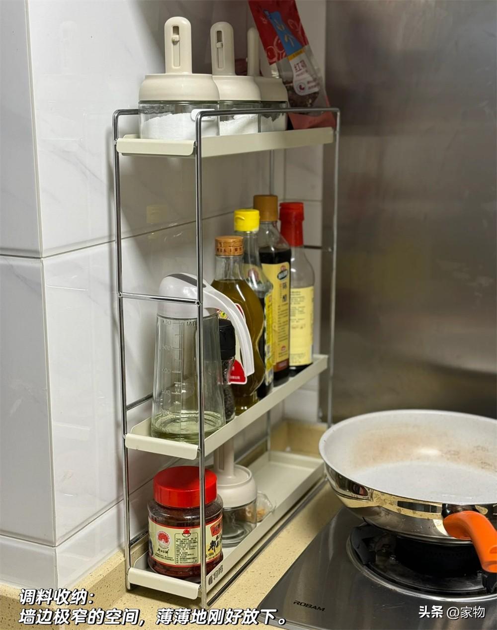 竈臺旁邊,的調料架也是神仙好物,剛好利用起了旁邊的冗餘空間,且做飯時拿放都非常方便。