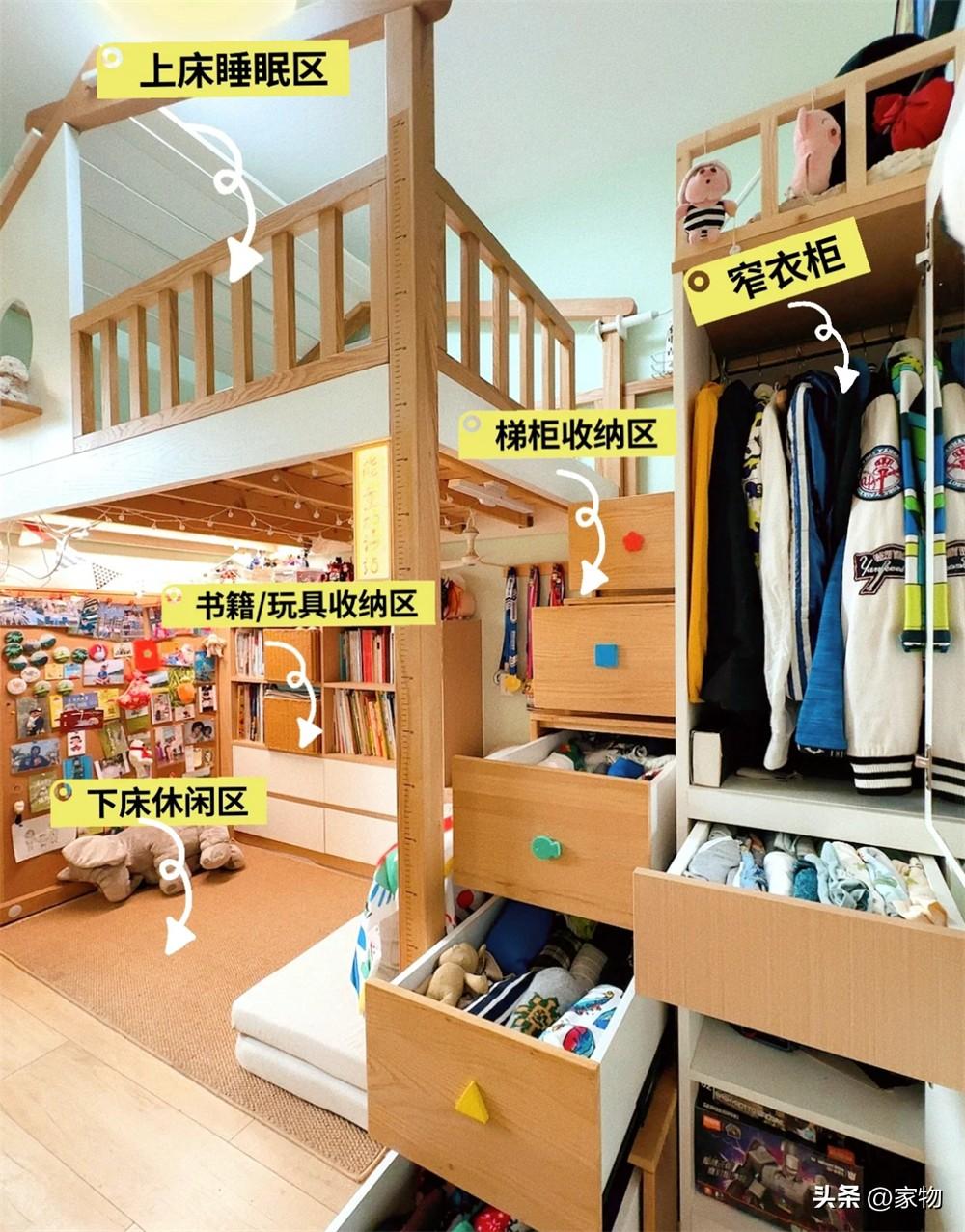 別看小屋面積只有70㎡、層高只有2米7,卻將整個空間利用到了極致,不僅孩子喜歡,還兼顧了實用性和收納能力,讓人佩服!