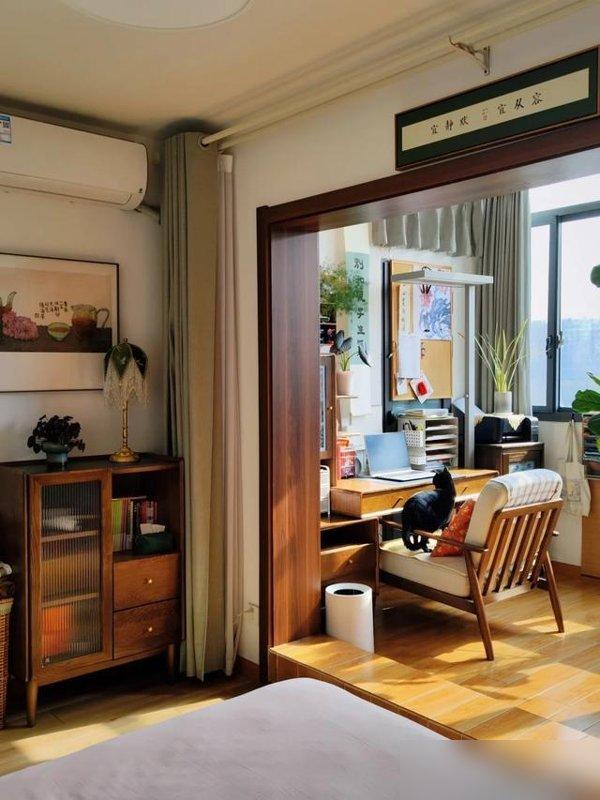 飄窗上沒鋪軟乎乎的墊子,倒放了塊小席子——“夏天涼快,冬天墊個薄毯子也不悶”;牀尾擺着老櫃子,是從別處挪過來的,“用了幾十年的東西,看着親切”——你說,那些花大價錢裝的“網紅飄窗”,有幾個能像這樣,把“舒服”刻進日子裏?