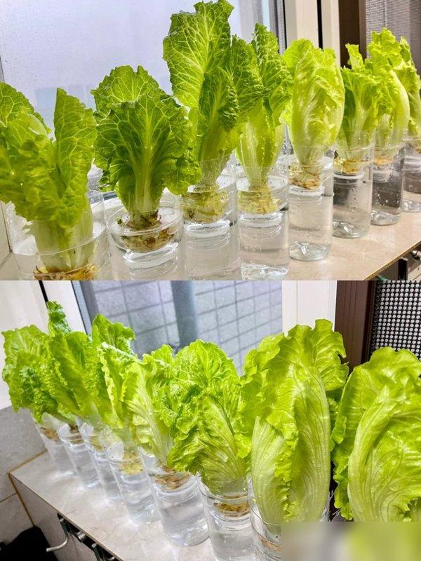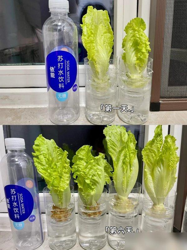 現在我家陽臺也擺了一排礦泉水瓶,生菜大蒜小蔥蘿蔔都有,摸葉子的時候軟乎乎的,喫的時候咬一口帶着自己的心意。