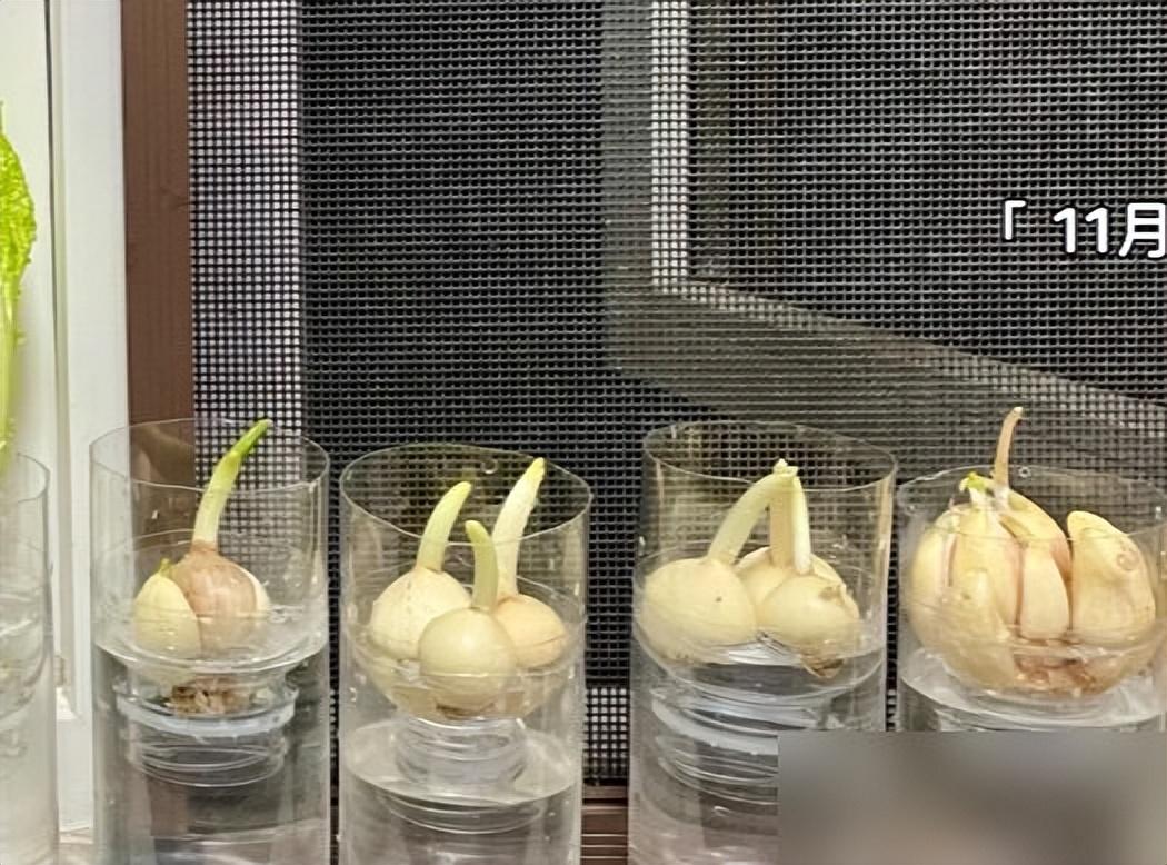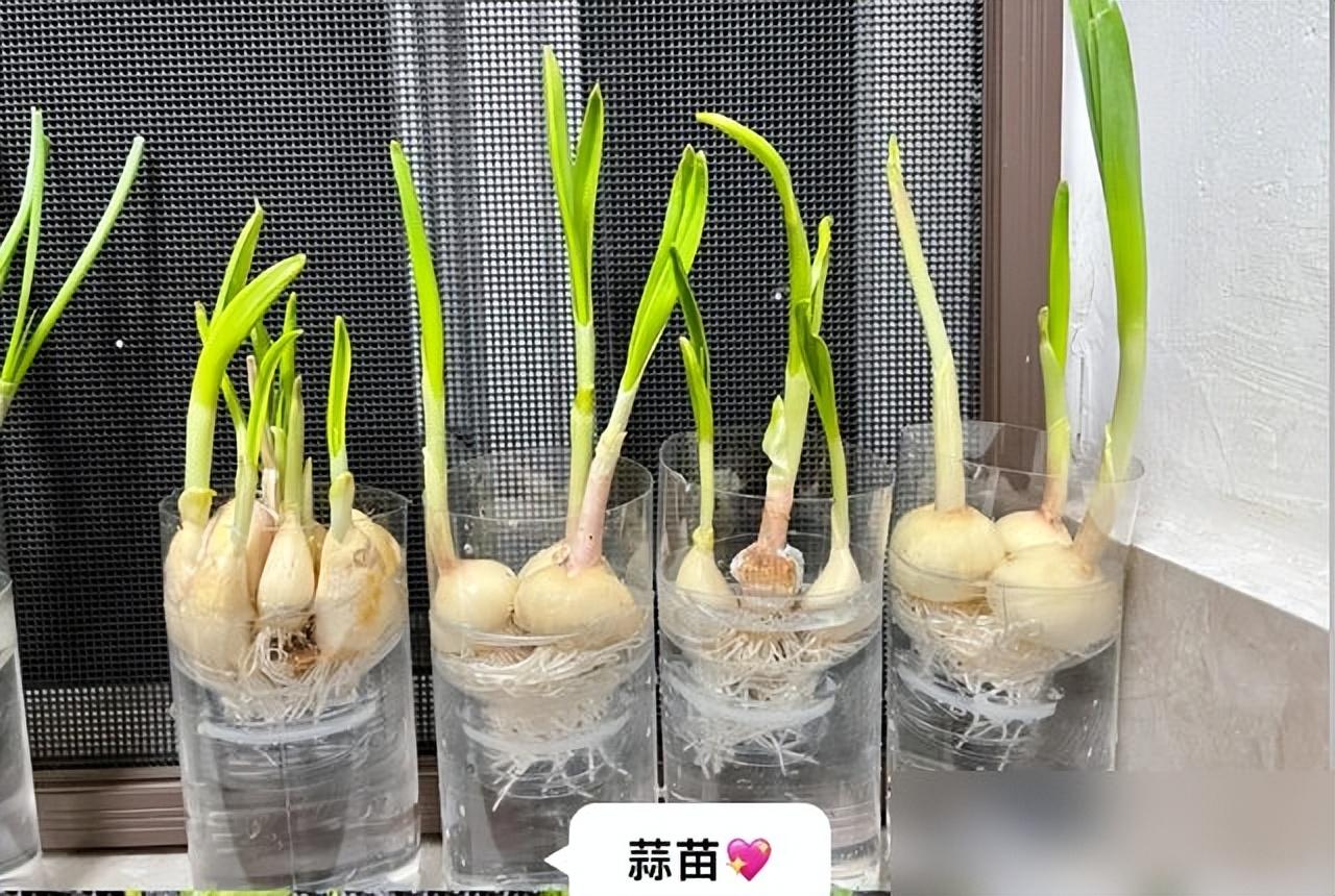 大蒜喫不完,剝了皮放瓶子裏,底部碰水蒜芯別泡,剛開始晃盪,等蒜苗冒出來,大蒜自己就“長胖”固定住了。放亮處的蒜苗翠綠粗壯,放陰處的嫩黃細長,炒雞蛋時掐兩根,香味兒直鑽鼻子——這難道不是“隨用隨取”的終極解法?