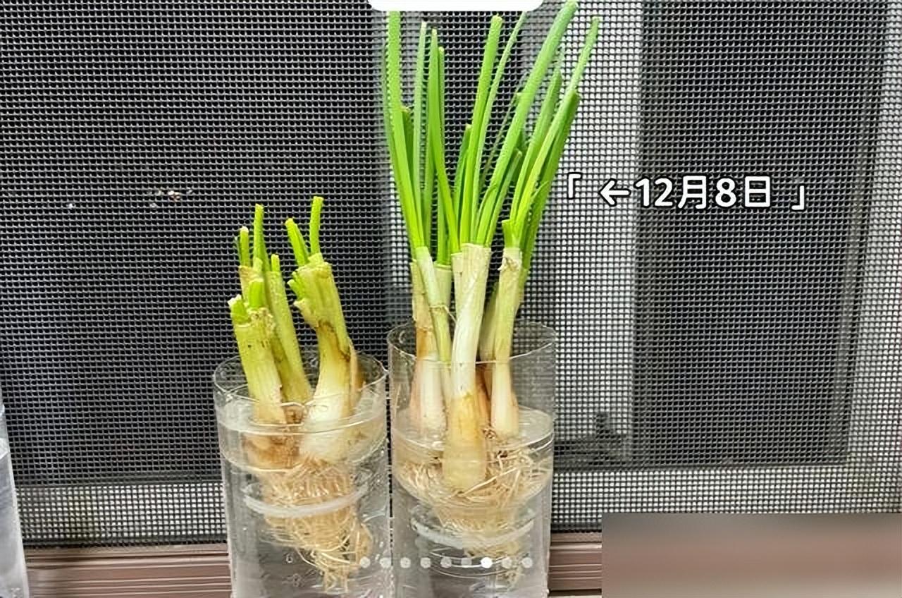 小蔥更方便,買的時候留根部四五釐米,擼掉泥土直接水培,就是得每天換水防異味。