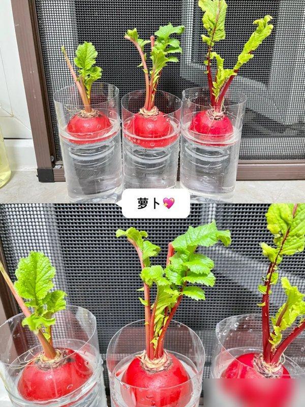 團購的紅蘿蔔切下底部放托盤,加一釐米水每天換,沒幾天長嫩葉子,蘸醬喫脆生生的,養一個月還能開淡粉色花,陽臺瞬間變小花園——這不比買鮮花還划算?