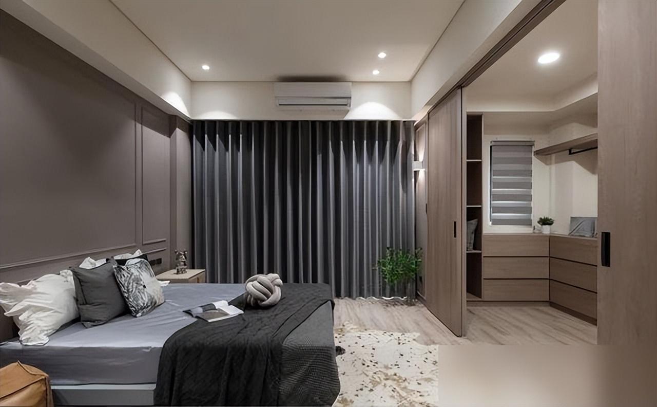 二層孩子房用奶茶色系配美式飾板,溫暖得像杯熱可可;三層主臥延續沉穩風,格柵牆加繃布牀頭,隱形門藏進衣帽間,私密又時髦。