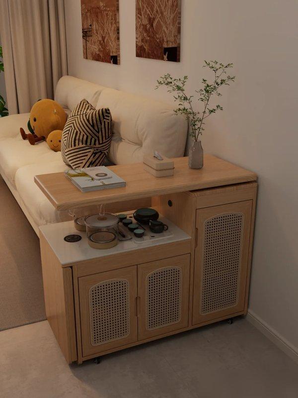 笨重茶几換成帶滑輪的小邊幾更神來之筆,想用就拉來,不用推角落,客廳瞬間多出三平米活動區。