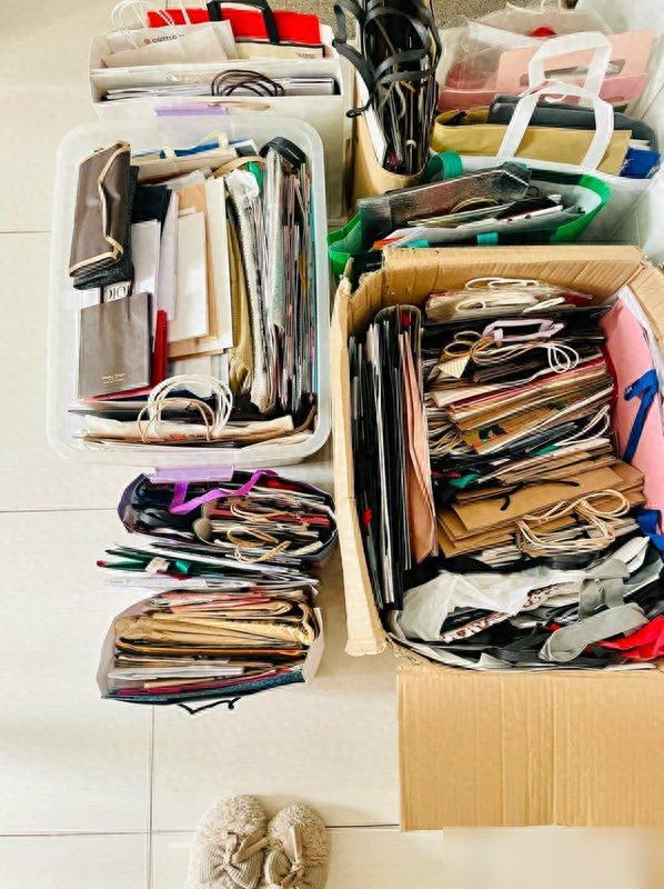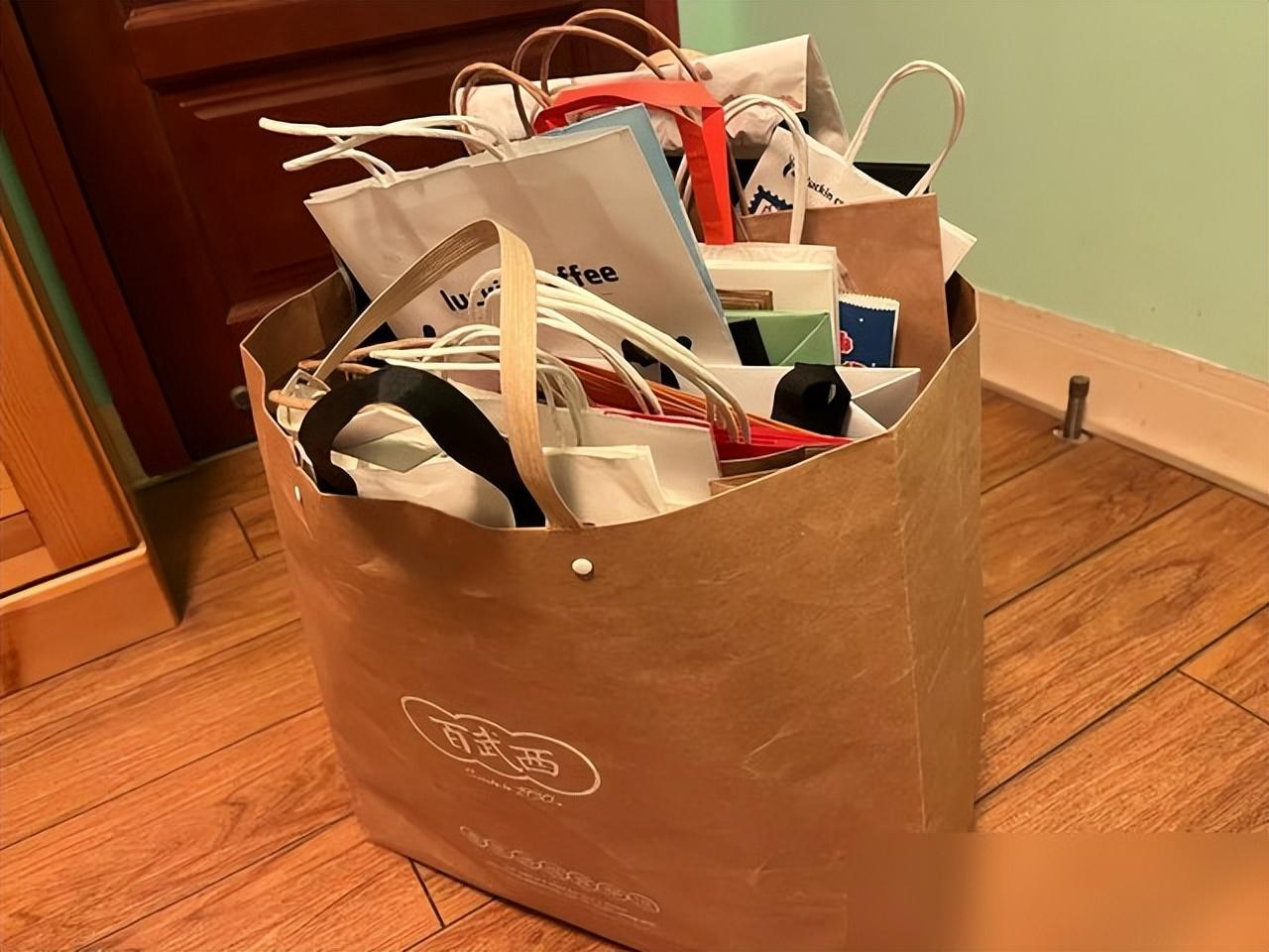 塑料袋捲成團塞滿抽屜,外賣袋子疊得比書還高,那些精緻的紙袋更是霸佔了半個儲物櫃。