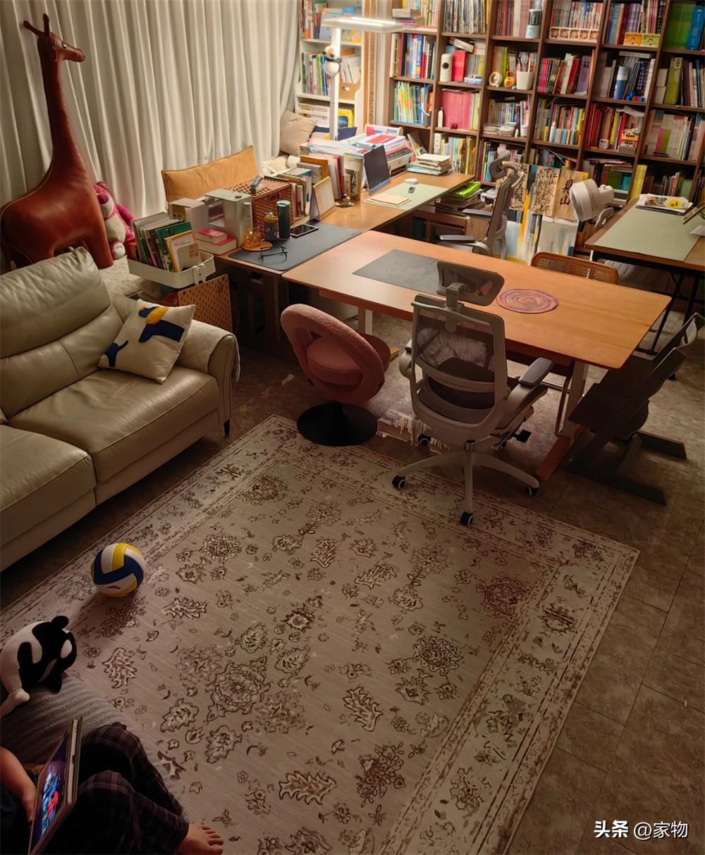 夫妻倆和倆孩子都有屬於自己的桌面空間,有時候,一家人坐在這裏一起工作學習,那場面還真是挺溫馨的。