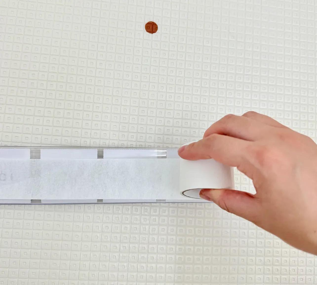 也可以貼一層美紋紙打底再上牆,更能保護牆面,後期也比較好取,不至於把牆皮撕下來。