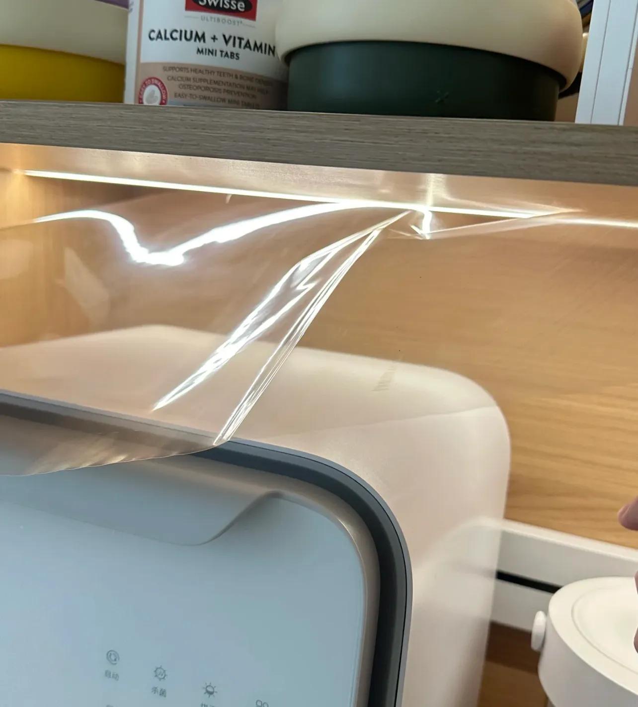 撕開覆膜,對準位置貼上,用刮板慢慢刮平,再裁掉多餘的邊。操作難度稍微高一點點,貼得平整又服帖的話,以後能整個貼膜副業幹一下!
