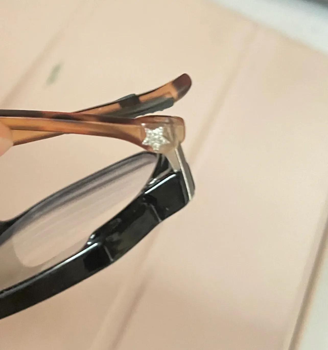用耳釘代替螺絲釘,閃亮的小星星正好給眼鏡腿鑲鑽了。