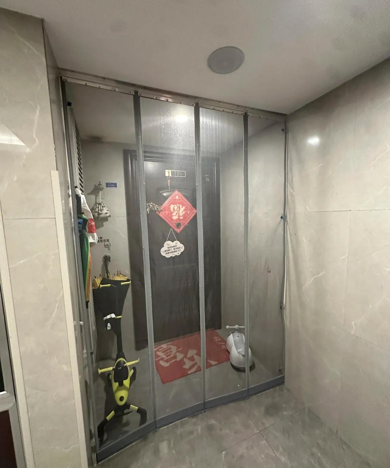 可以劃分空間,降低樓道噪音傳播,還可以阻擋萬一小型犬跑向電梯。