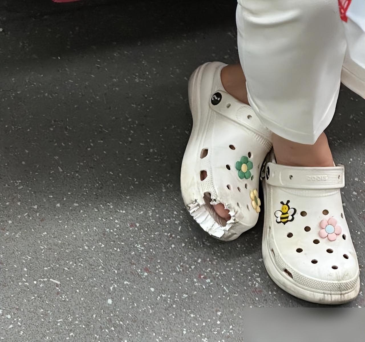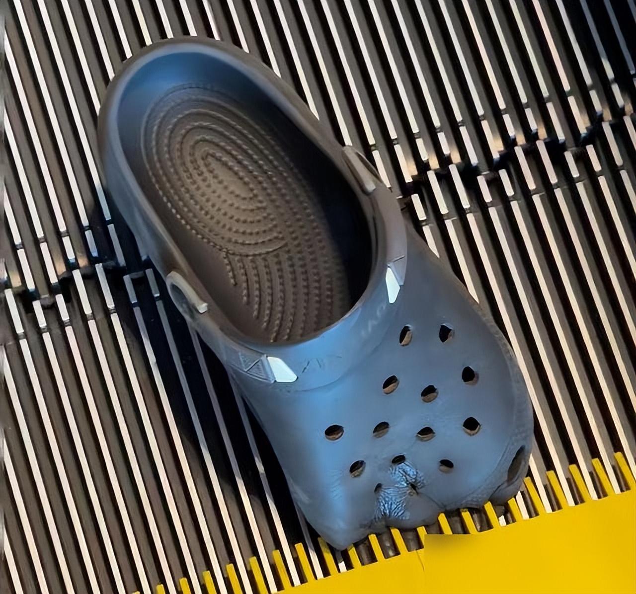 洞洞鞋雖透氣,可安全隱患上過新聞——電梯齒縫專夾這種軟膠鞋頭,腳趾頭差點遭殃。