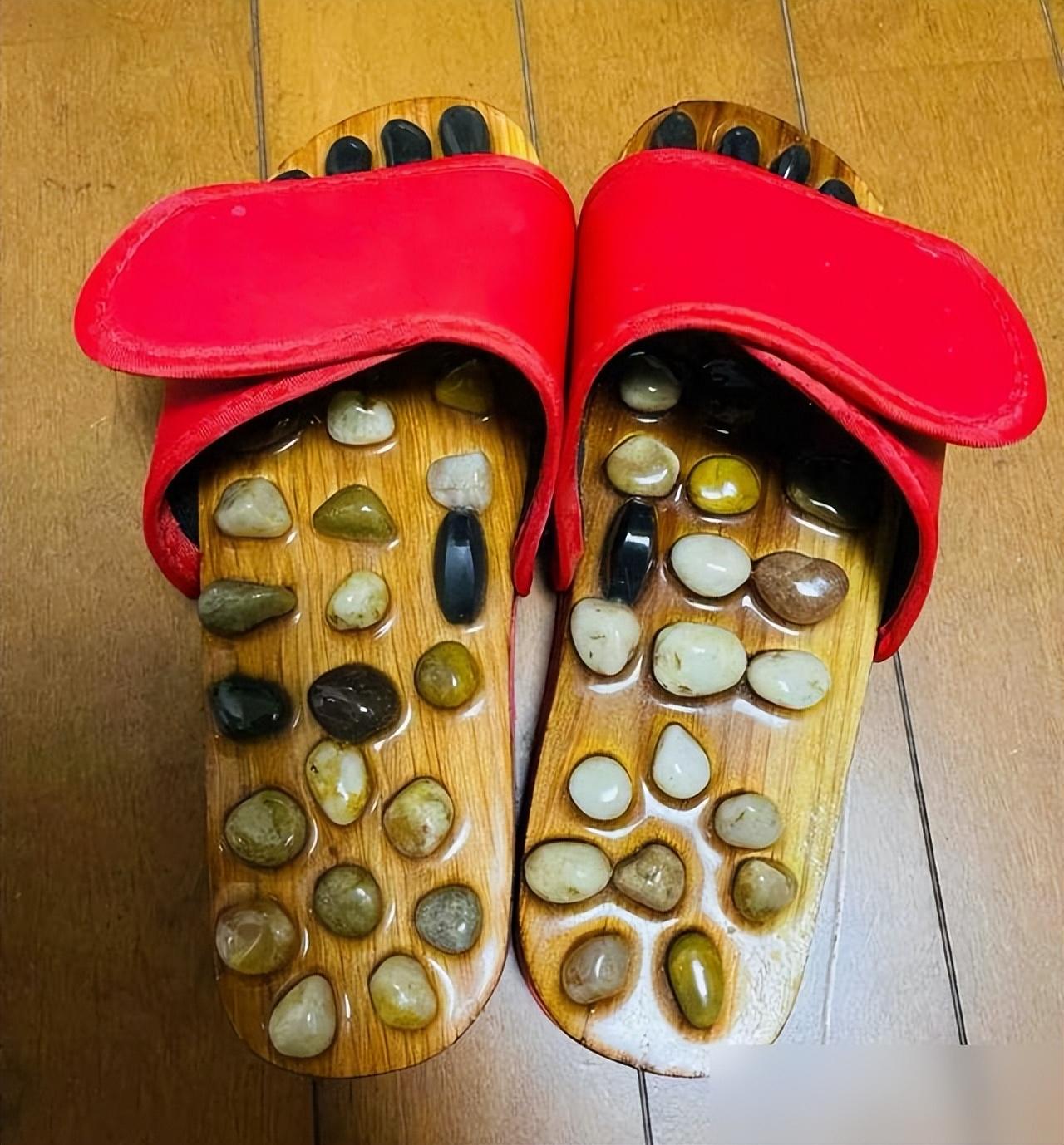 養生按摩拖鋪滿鵝卵石顆粒,商家吹得天花亂墜,實際走起路來步步鑽心疼。