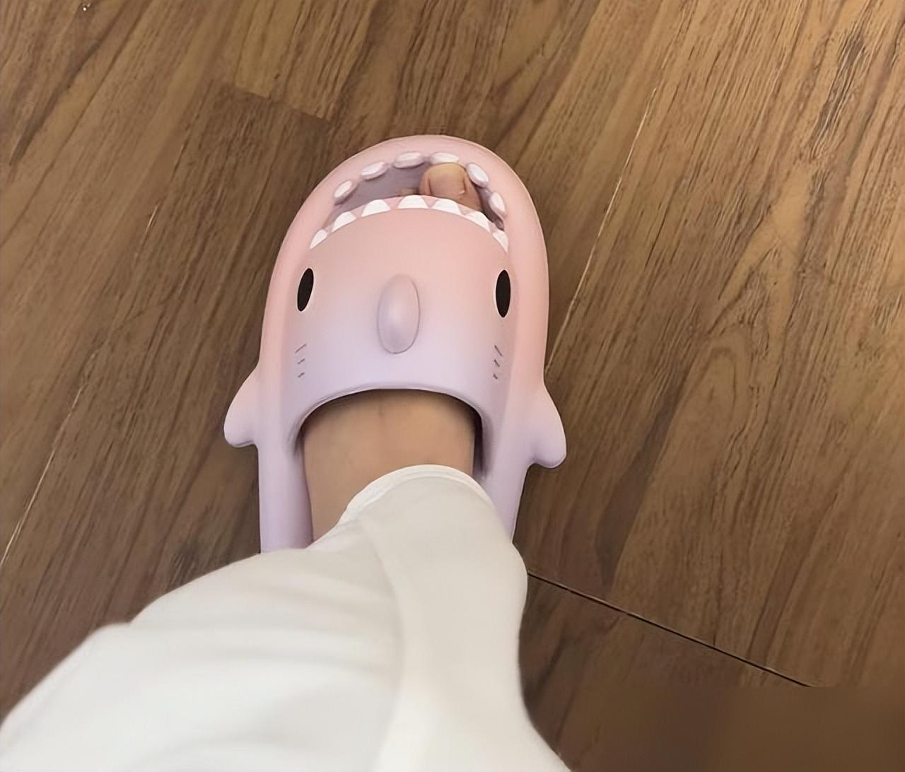 鯊魚拖鞋的尖齒總啃腳趾頭,洗澡積水能養魚,純屬中看不中用的典型。