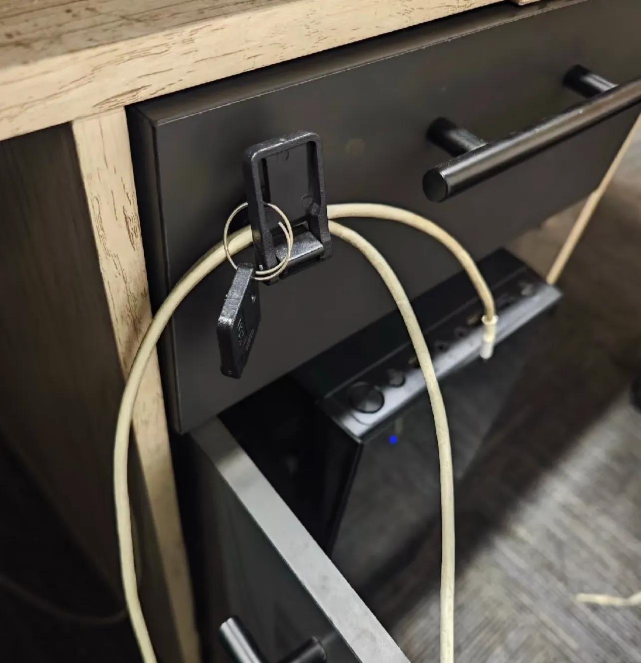 鑰匙插上畢竟是凸出來的,辦公室人過來過去,容易變身暗器,戳一下也怪疼的。摺疊起來就可以防磕碰。