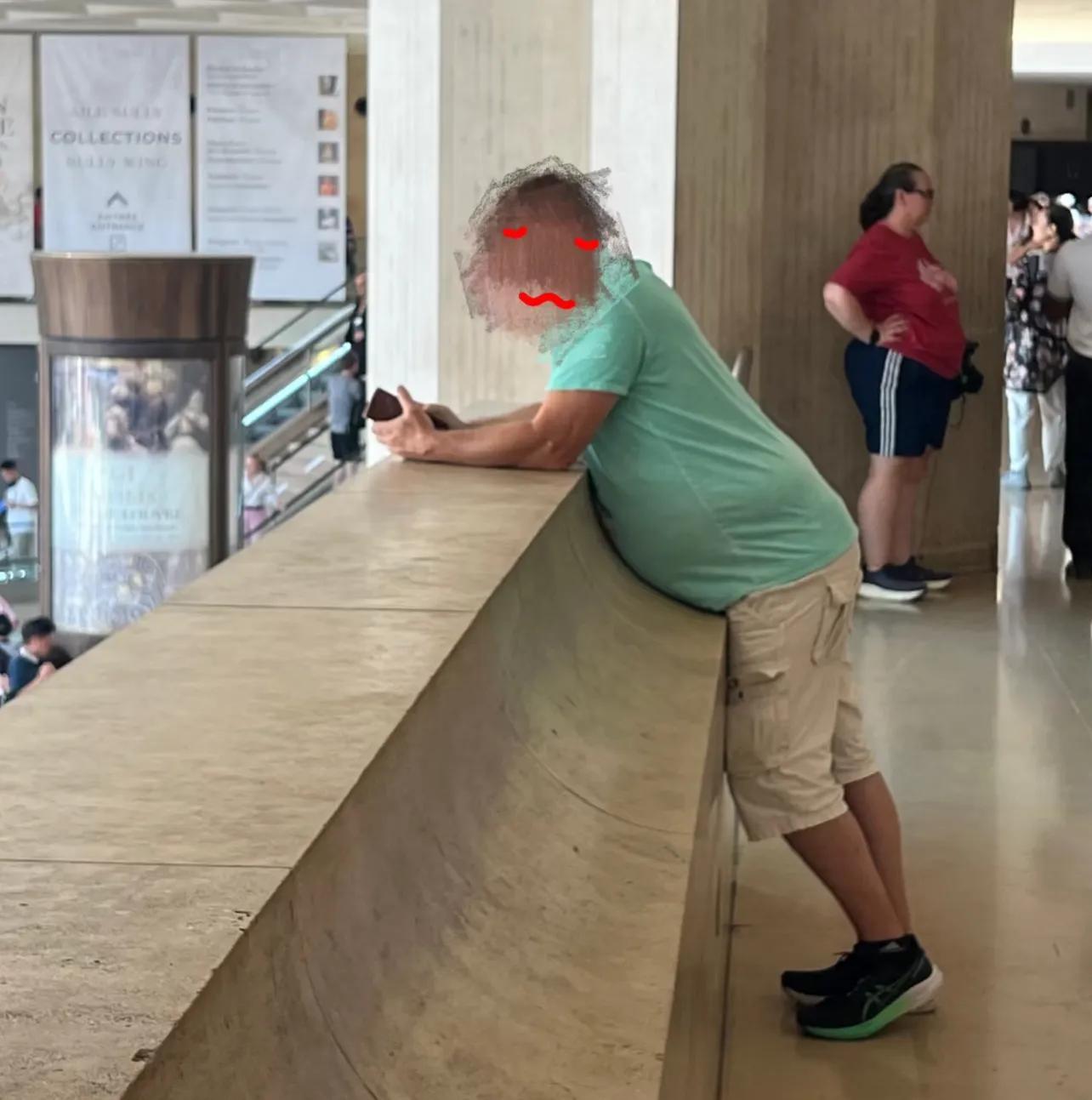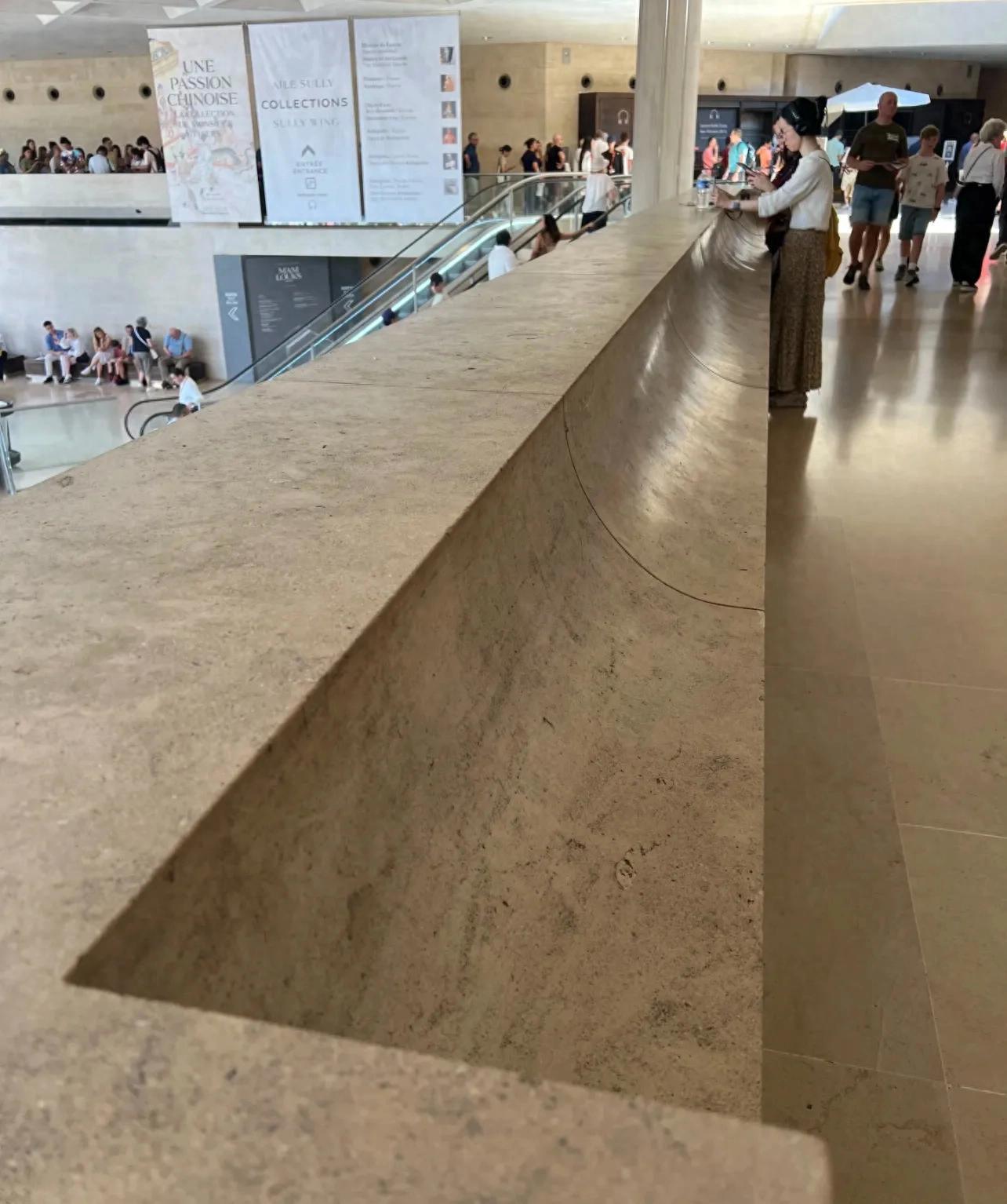 這是來自盧浮宮的設計,本來不知道這個弧形設計用來幹嘛的,直到看見下面的大叔。
