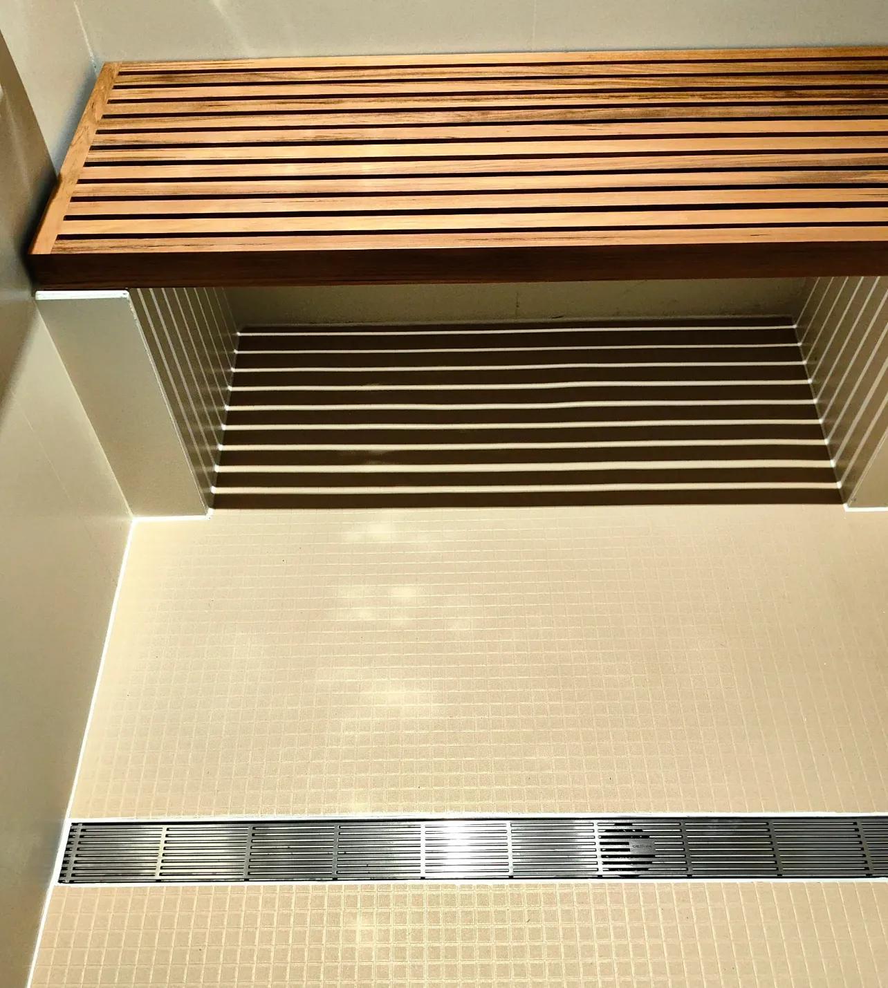 還裝了長條地漏,分割乾溼區,替代擋水條,推輪椅的話比較方便,不過後期還是比較難清潔。