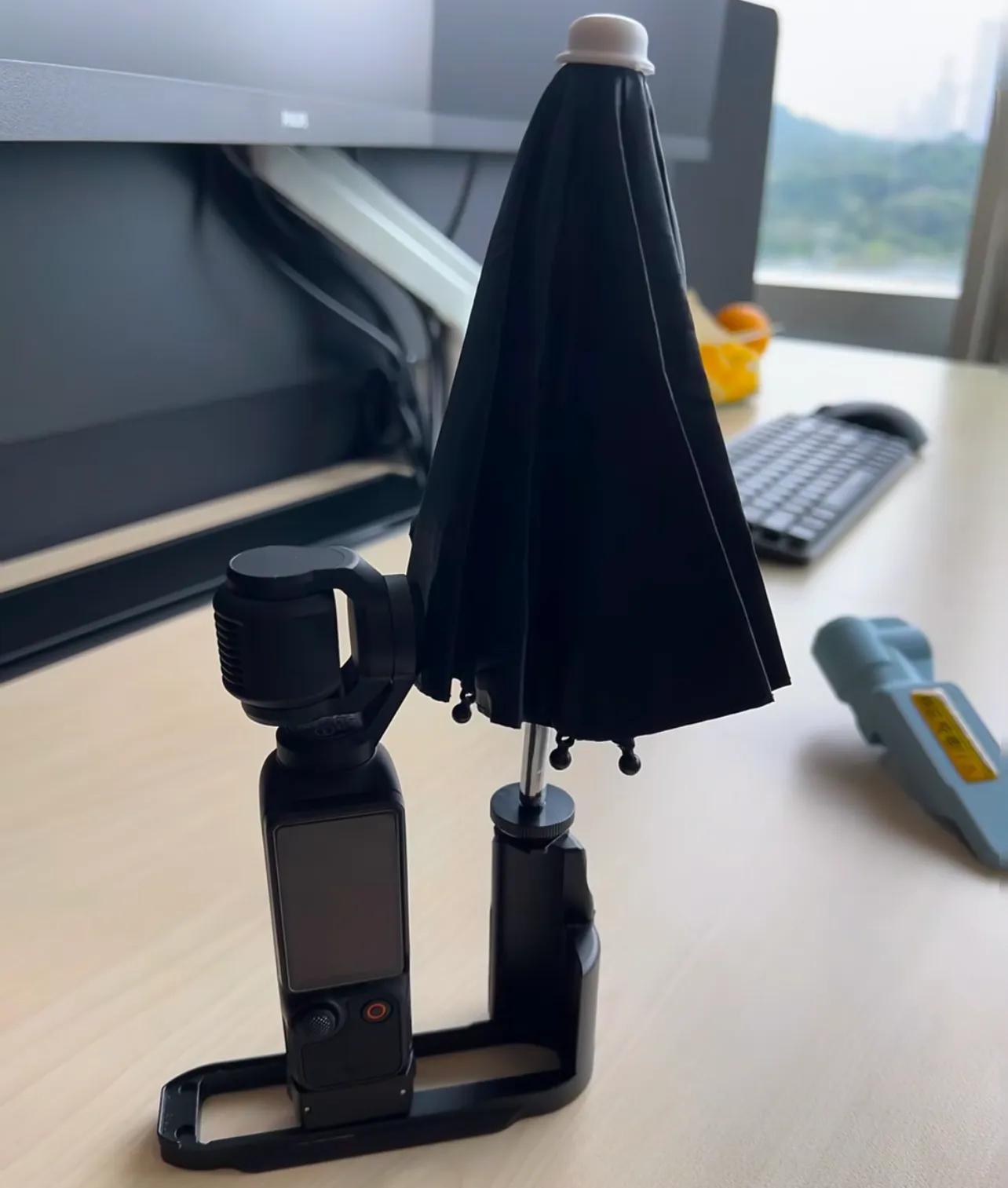 給它加一把雨傘還是可以解決的,相機手柄加相機傘套件,用502膠粘合,就是一個防雨裝備了。
