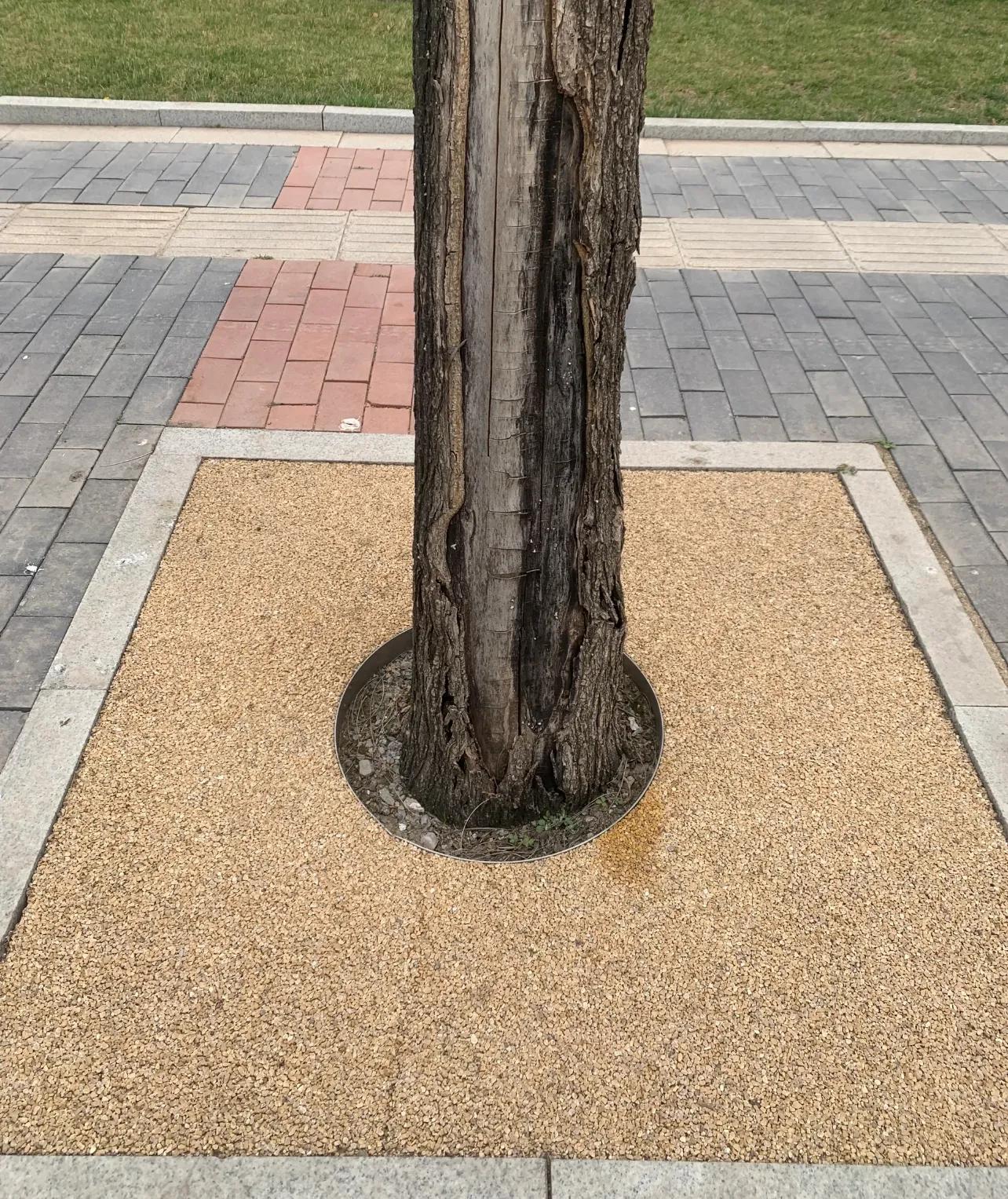 西安的做法是用透水混凝土,兼具防塵美觀和對樹更好,讓根系能夠自由呼吸,這纔是古人"道法自然"的現代詮釋。