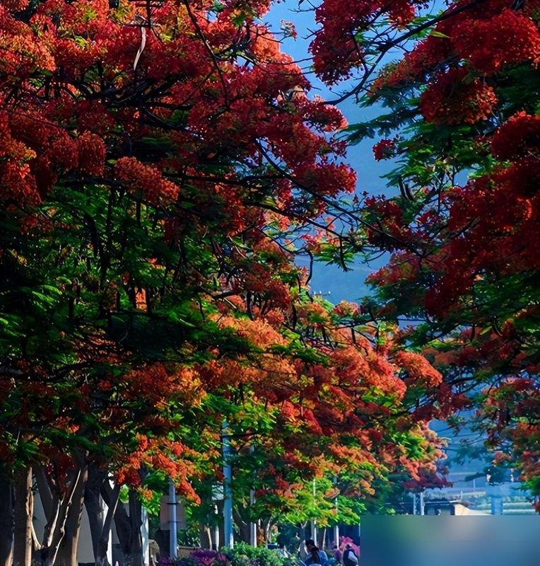 鳳凰花就是這樣——不是星星點點的紅,是鋪天蓋地的豔,花瓣堆在枝頭上像揉碎的晚霞,風一吹就晃着細碎的光,站在樹底下隨便拍一張,連濾鏡都省了,自帶股子仙勁兒。