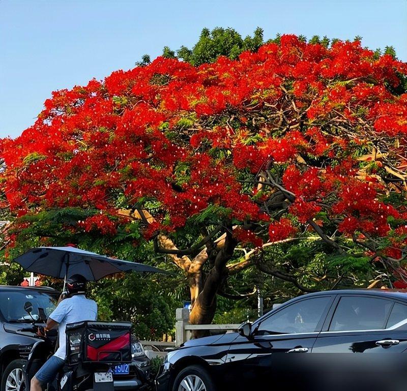 現在人總愛折騰裝修風格,北歐風、侘寂風砸不少錢,可院子裏種棵活樹纔是真本事——鳳凰木的樹冠像把撐開的巨傘,夏天往底下一坐,涼絲絲的風裹着花香,花影斑斑駁駁灑在地上,比掛串網紅燈浪漫十倍不止。