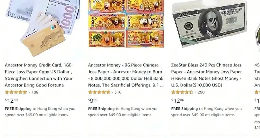 甚至,國內幾塊錢一打的冥幣在亞馬遜上,一度賣到了7~20美元。