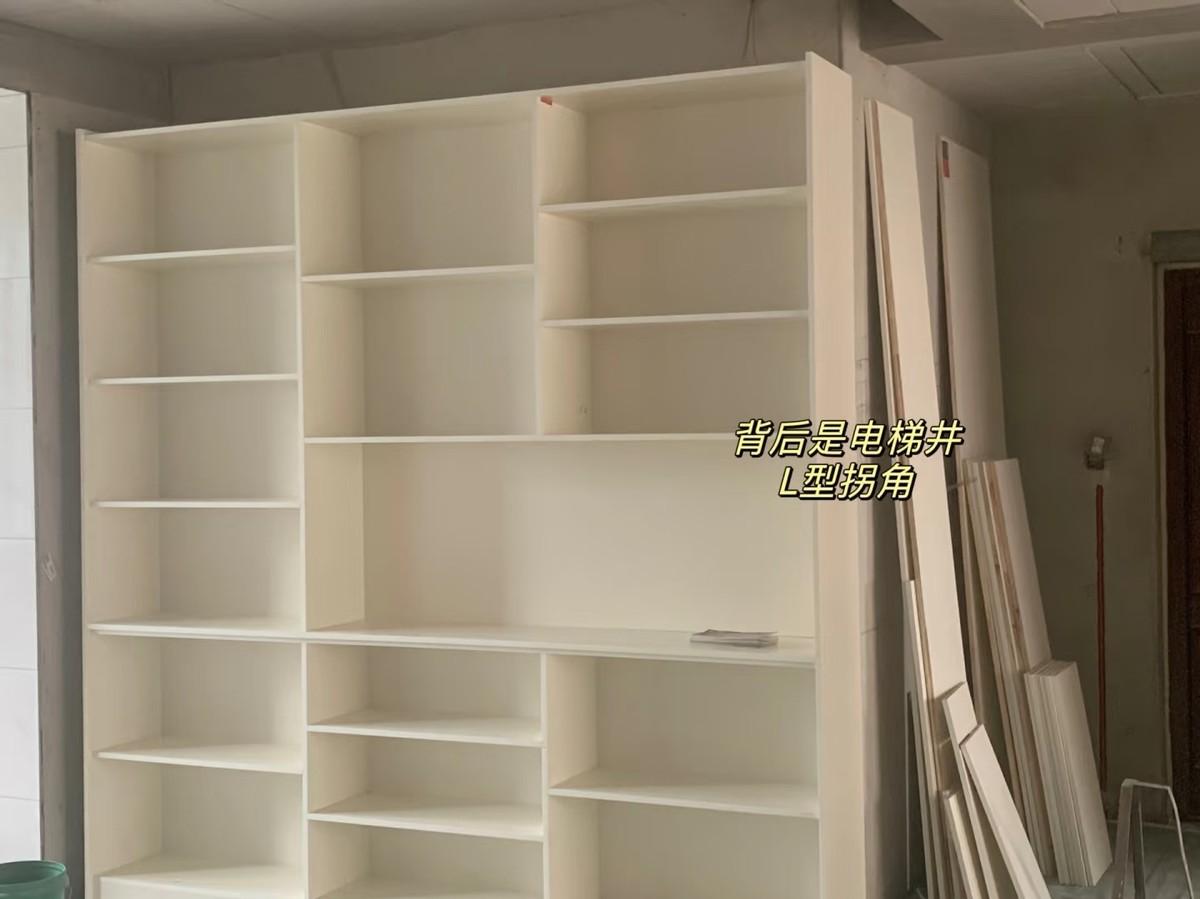靠牆做50公分的櫃子,在外面打輕鋼龍骨,上面裝石膏板,石膏板的表面可以刮膩子刷乳膠漆。完成以後,就是一個簡單的衣帽間。