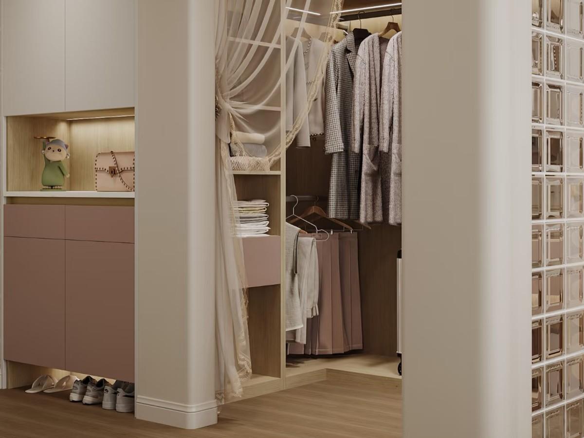 對於入戶式衣帽間,建議大家選擇的材料就是選擇常規的輕質材料,儘量不要再去砌牆。